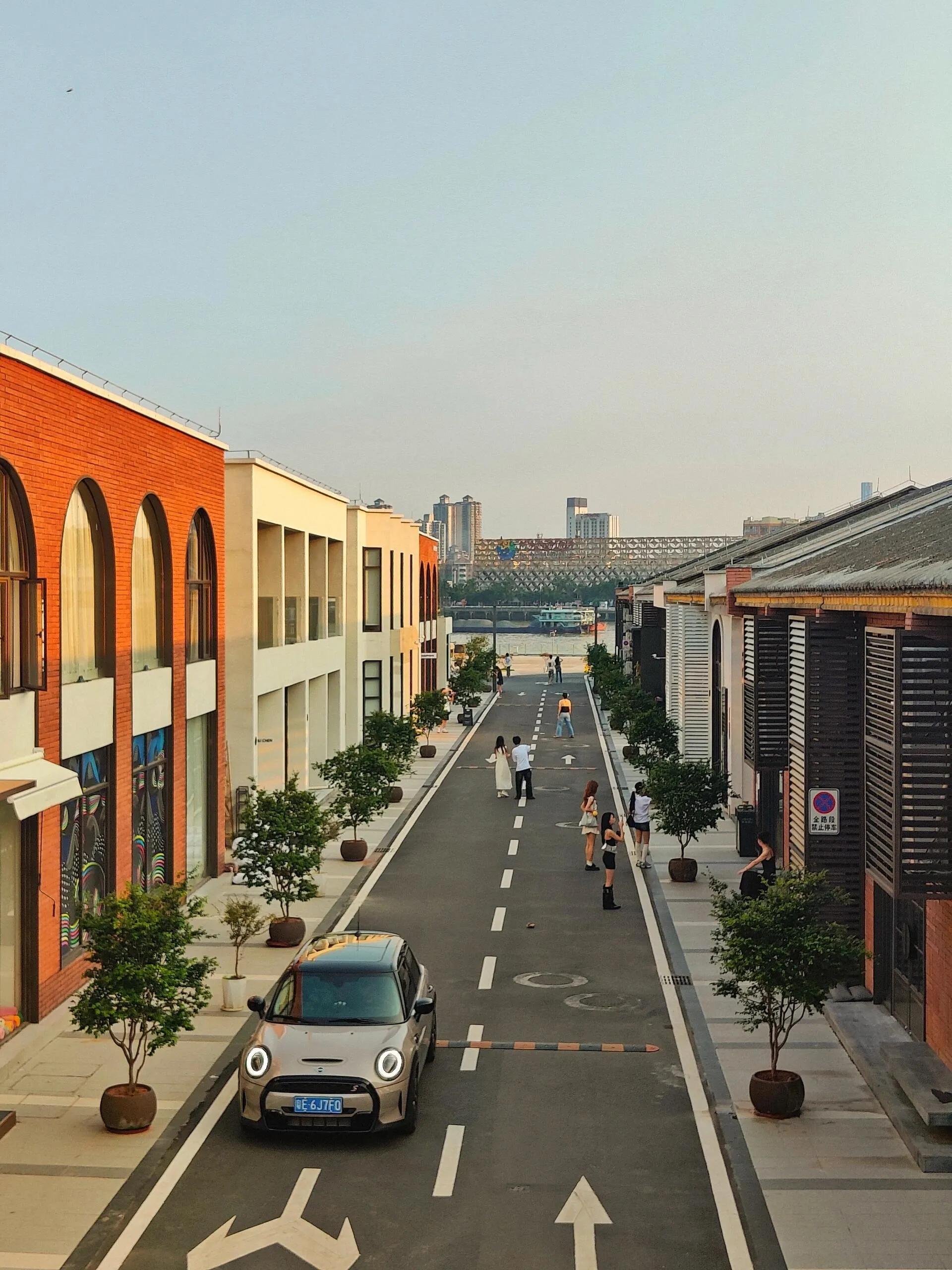 B.I.G海珠湾艺术园区是一个免费开放的景点,以其美丽的日落景色而闻名。橘黄色的天空映照在江面上,泛起金光,景色令人叹为观止。园区内还原了多处韩国街头场景,包括韩系小房子、指示牌、斑马线和自行车等,氛围感十足。此外,还有露营风、奶油ins风等多种场景,适合拍照。