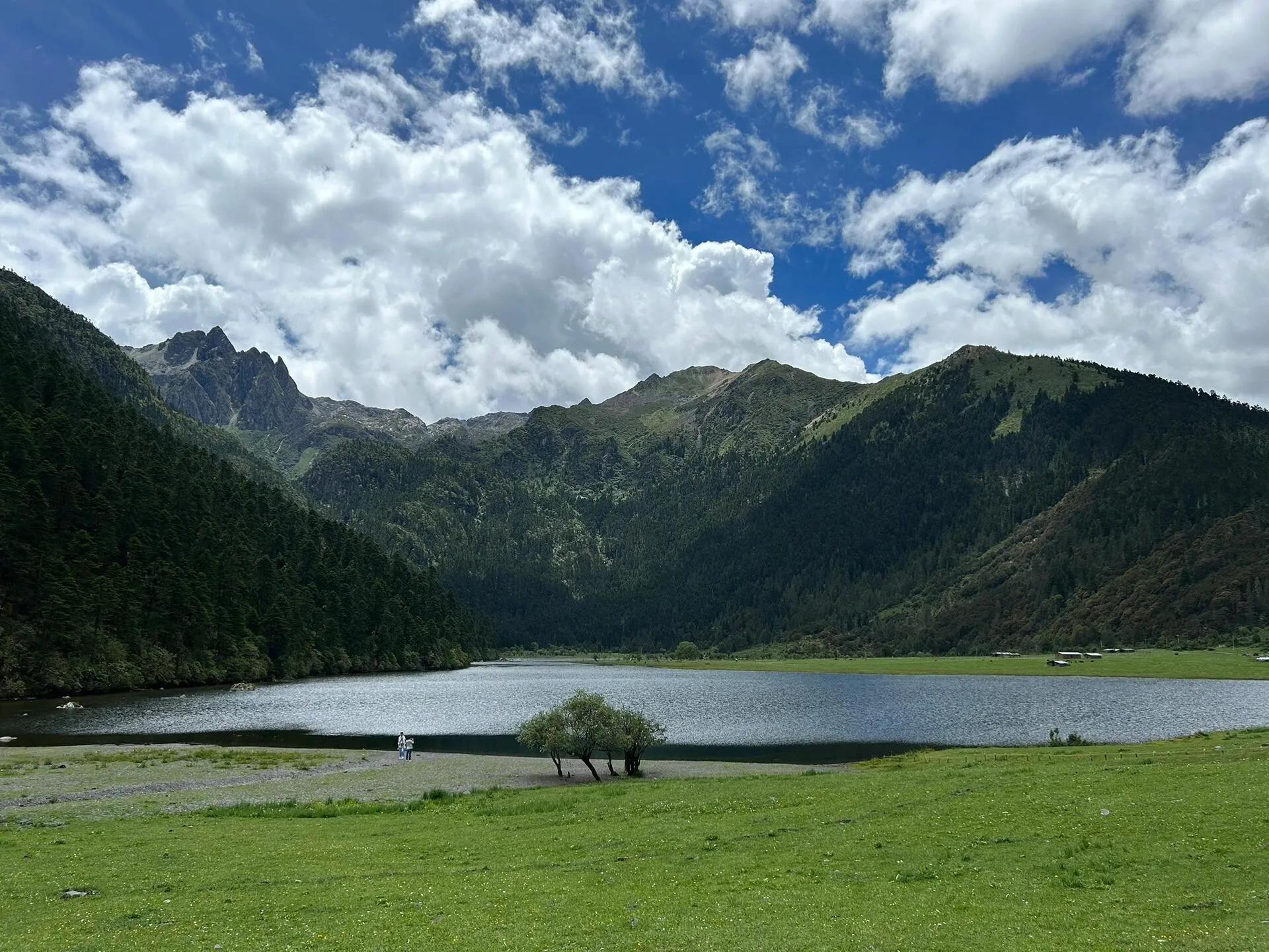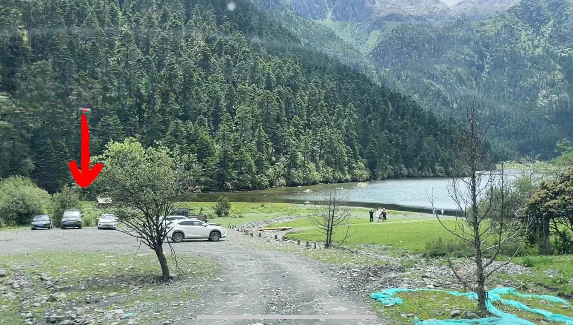 为什么不推荐露营呢?我提前在小红书联系了工作人员,被告知可以在湖边指定区域露营。但到了现场后,情况完全不同。首先,自带装备只能在停车场附近的指定区域搭建,而不是湖边。其次,这个所谓的“指定区域”实际上是个偏僻的角落,前面是小河流,右侧才能看到无底湖,与预期的湖边露营体验相去甚远。