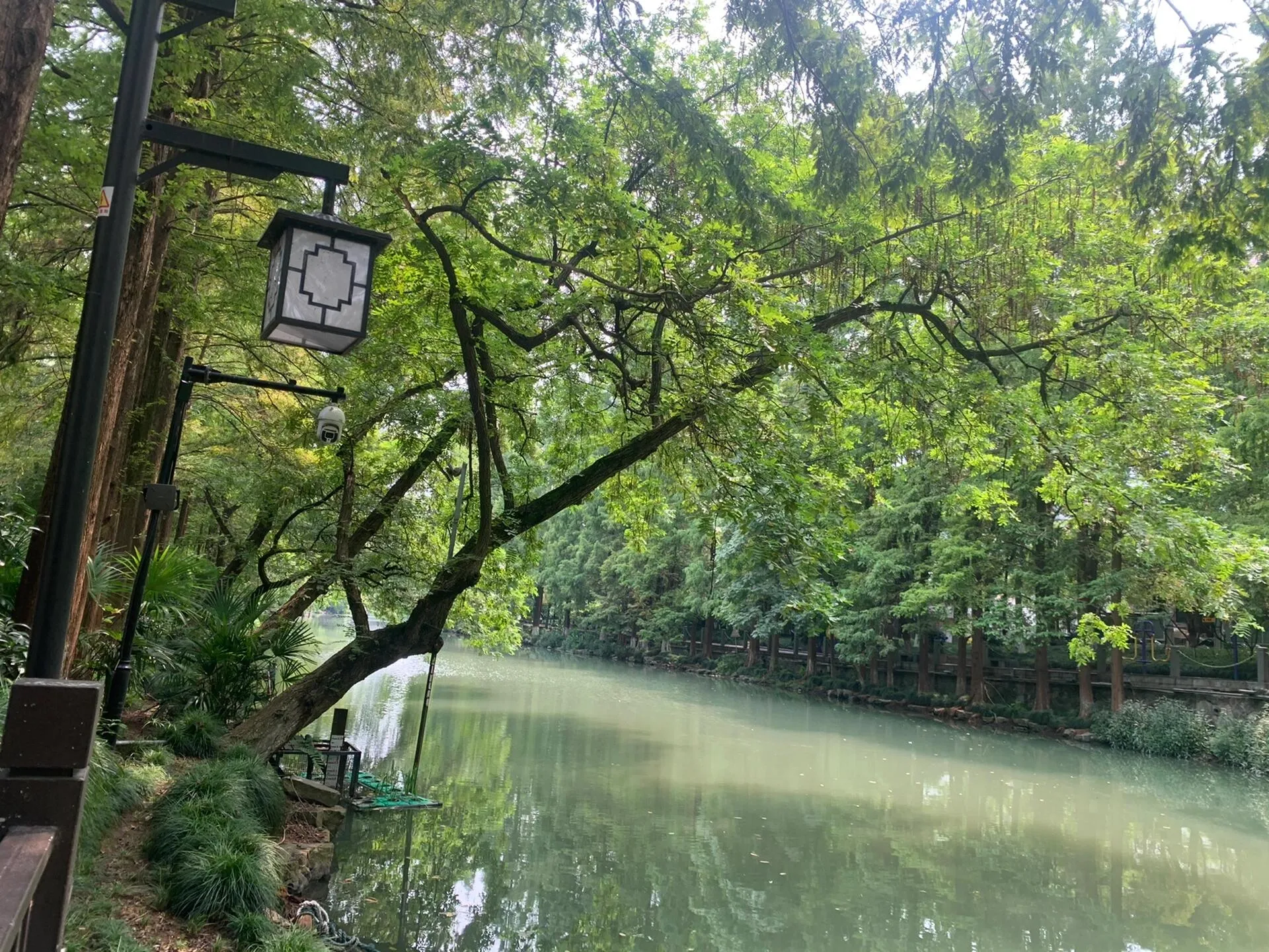 接着尝试了被誉为“杭州最美水上路线”的7号线。 这是一艘电动木船,只能容纳8人,需要等满8人才会开船。由于人气很高,排队的人不少,而且40分钟才一班。等待期间周围蚊子较多,建议带些花露水防蚊。