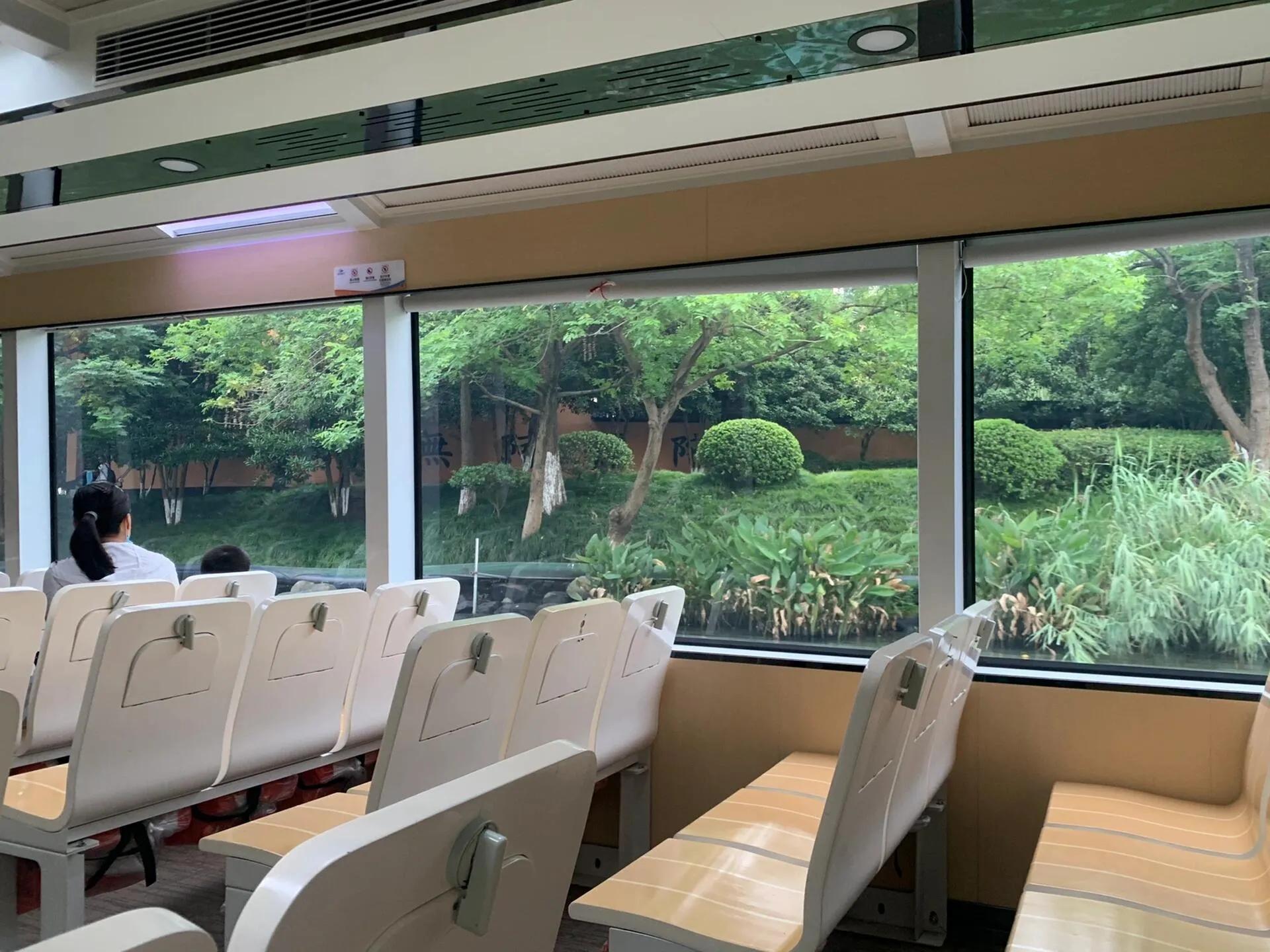 首先是水上巴士2号线。从蒋村站出发,沿着杭州大运河行驶。乘坐的是一艘封闭式小艇,内部有空调,比想象中舒适得多。船内空间宽敞,乘客不多,整体体验非常不错。航行在开阔的河面上,感觉相当稳定。票价3元,性价比很高。