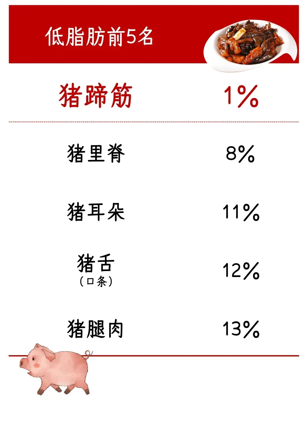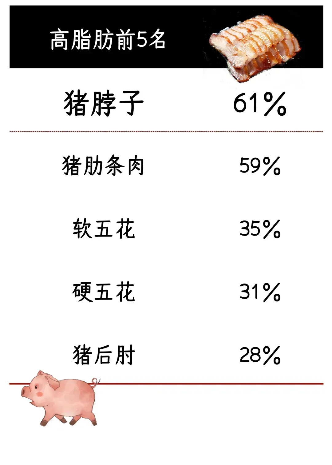 以下这些部位的脂肪含量惊人,尤其是猪脖子,脂肪含量高达61%。