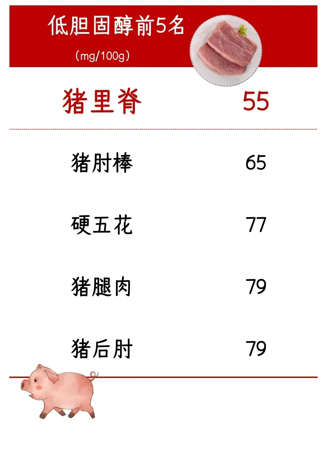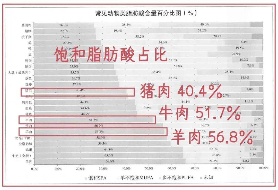 如果在猪、牛、羊这三种红肉中进行选择,猪肉的饱和脂肪酸比例确实最低。