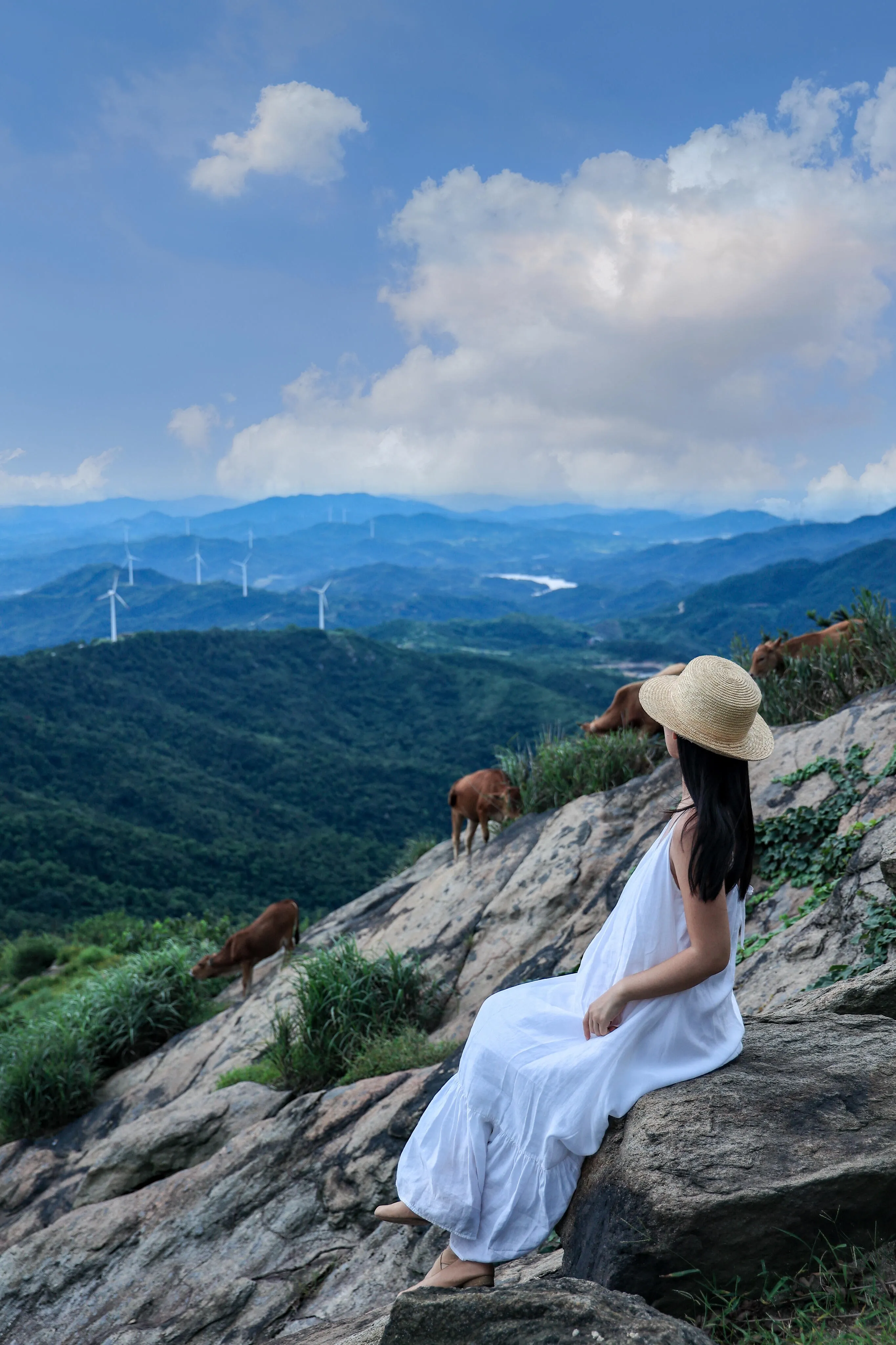 山上露营非常适合观赏日出日落、星空和云海。虽然这次去的时候天气转阴了,没能看到日落,但在山上吹着晚风,欣赏开阔的远山、风车,和成群的牛,依然被这里的美景深深吸引。