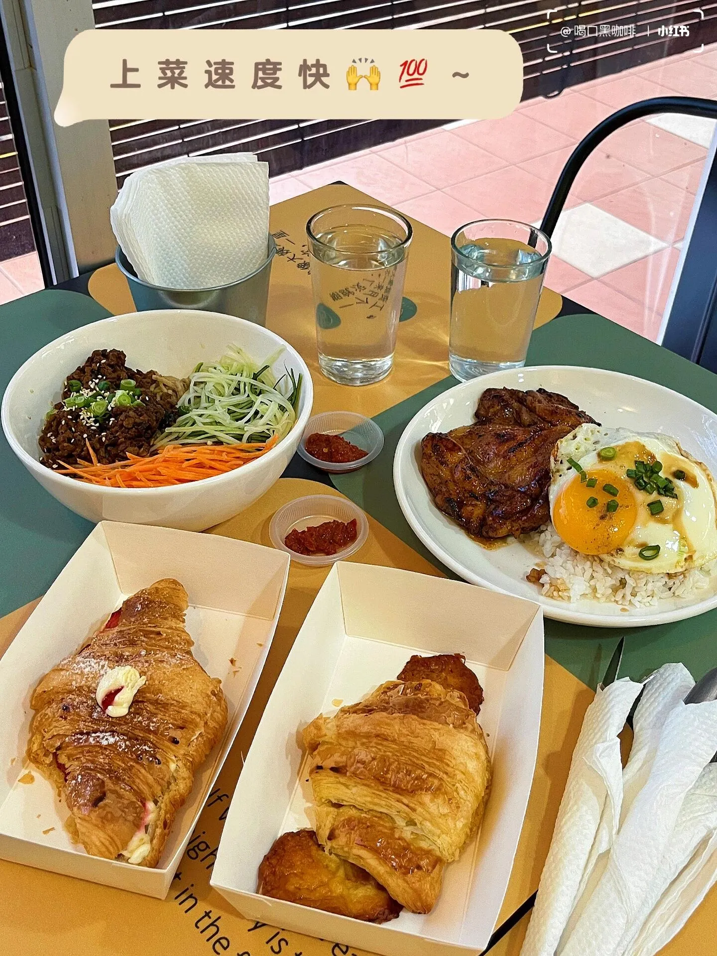 品尝过的食物中,鸡腿饭份量十足。鸡扒经过腌制烘烤,口感香嫩,搭配半熟鸡蛋黄味道绝佳。附赠的培根猪油渣给得很慷慨,但可能会有点油腻,如果不能接受可以提前告知店家少放。