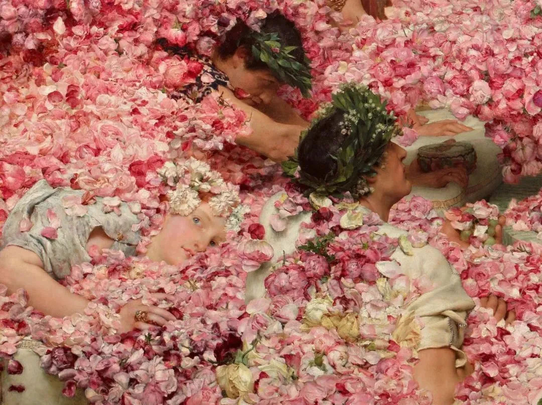 作为绝对的完美主义者,塔德玛为了呈现逼真的玫瑰花瓣,从里维埃拉特别运来了一批玫瑰,在画室内倾倒花瓣进行绘画。