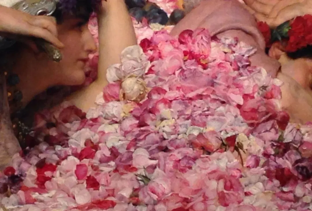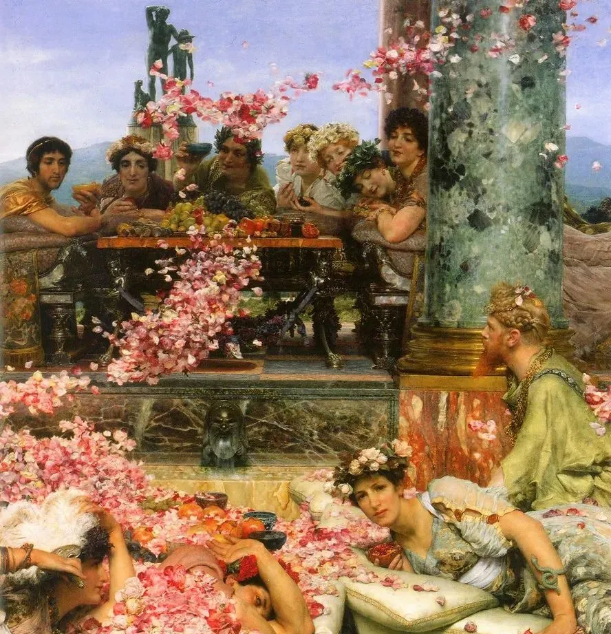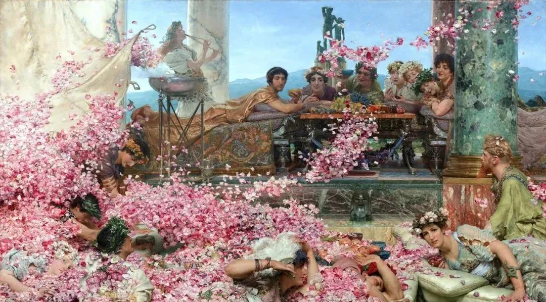 为了让宾客们在花海中窒息而死,埃拉伽巴路斯在宴会上下令开启宴会大厅的天棚,大量的玫瑰花瓣如瀑布般倾泻而下,砸向毫无防备的宾客们。