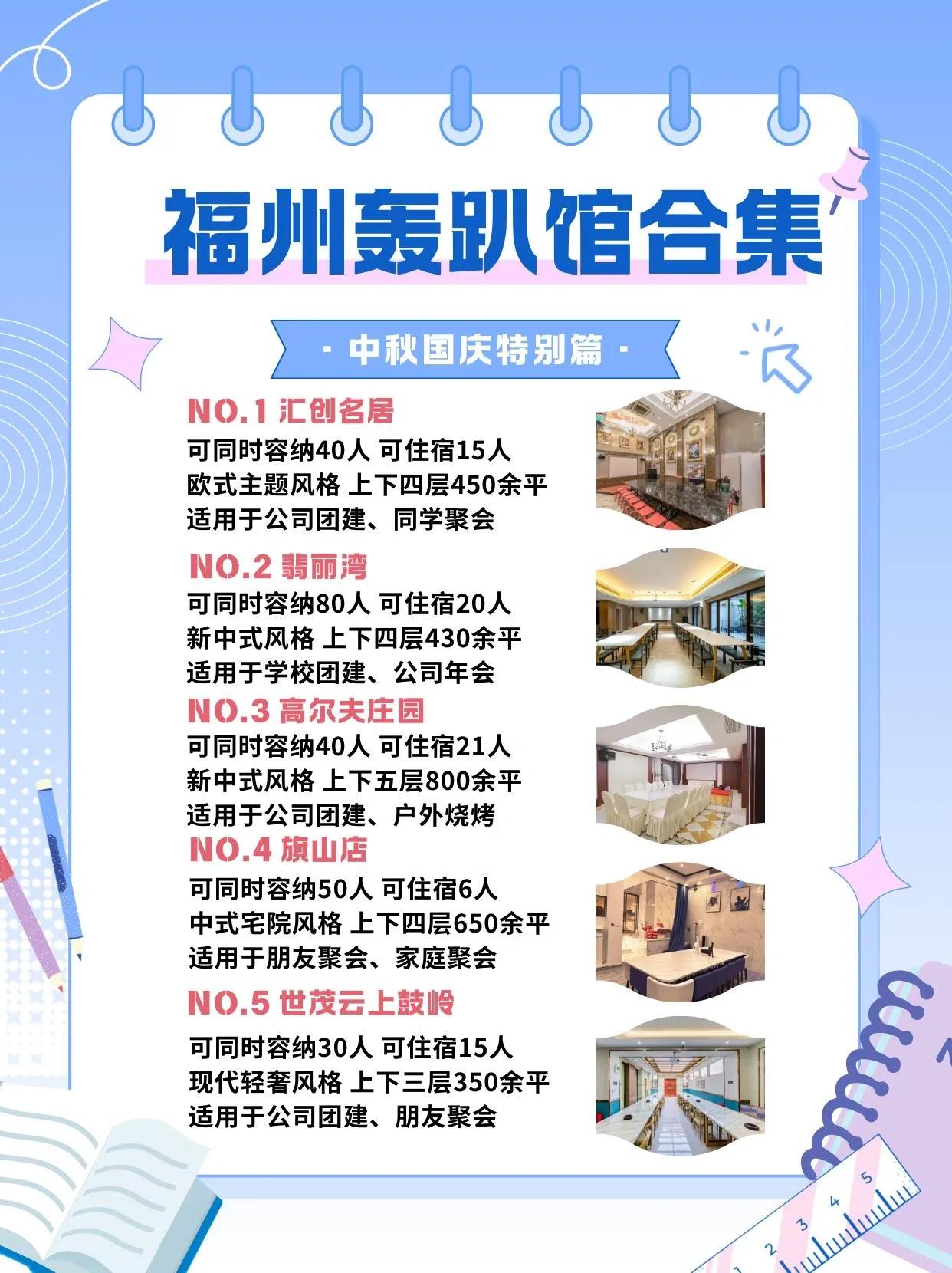 这些福州别墅轰趴馆各具特色,能够满足不同规模和类型的聚会需求。无论是周末聚会还是特殊场合庆祝,这些地方都能为聚会增添独特的氛围和体验。