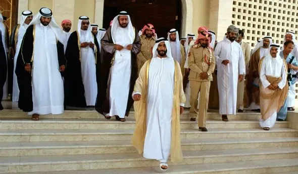 拍摄这张照片时,阿联酋国父谢赫·扎耶德已经66岁,正值他阿联酋总统任期的第13年(他总共担任了33年阿联酋总统)。