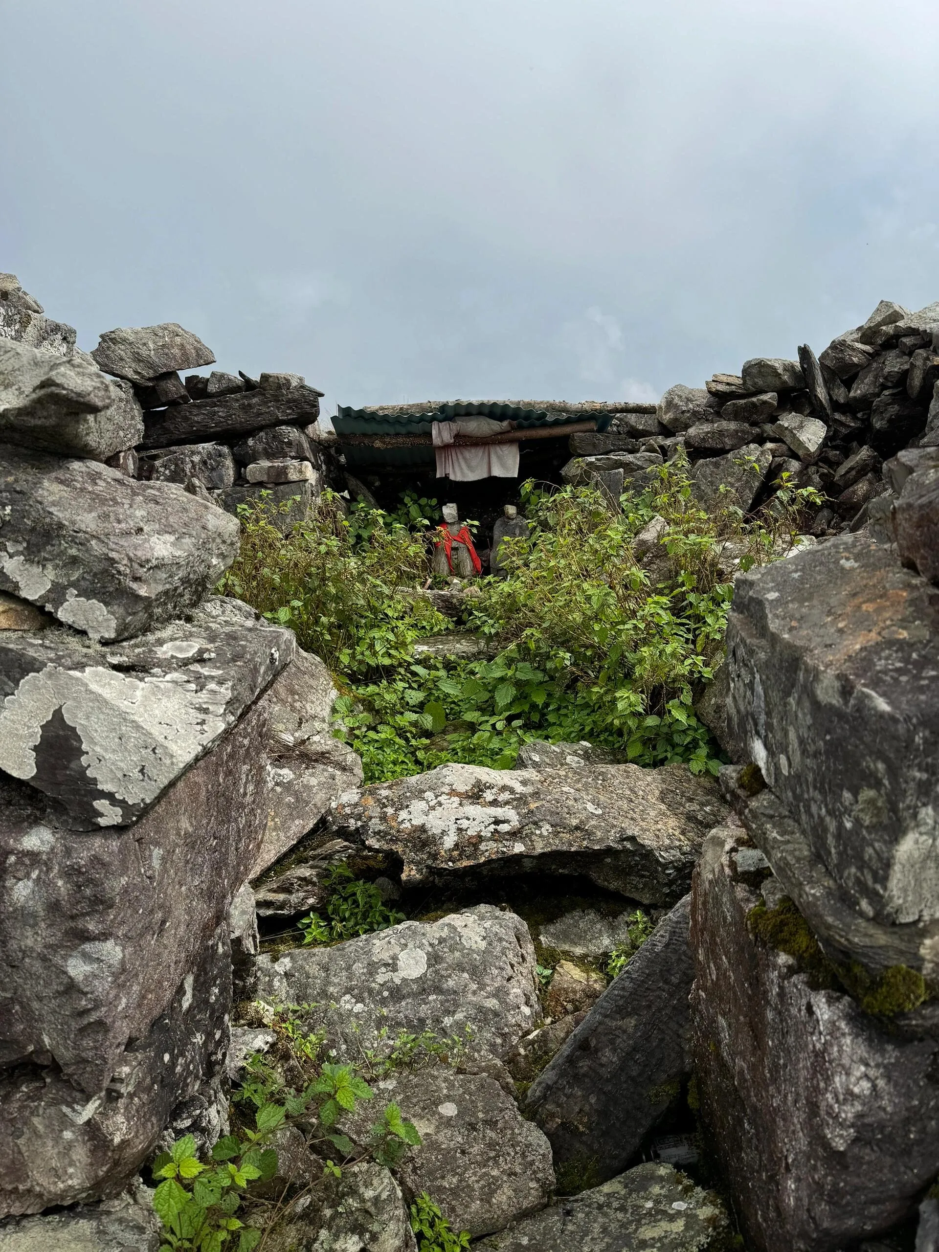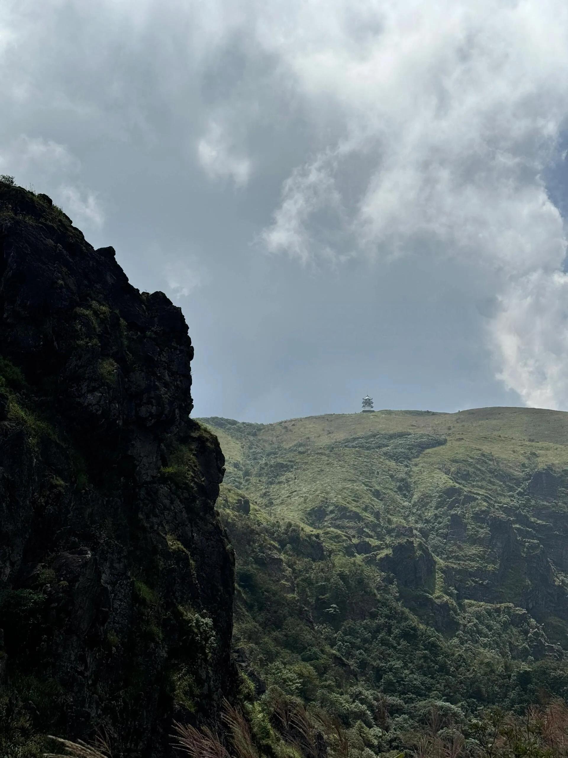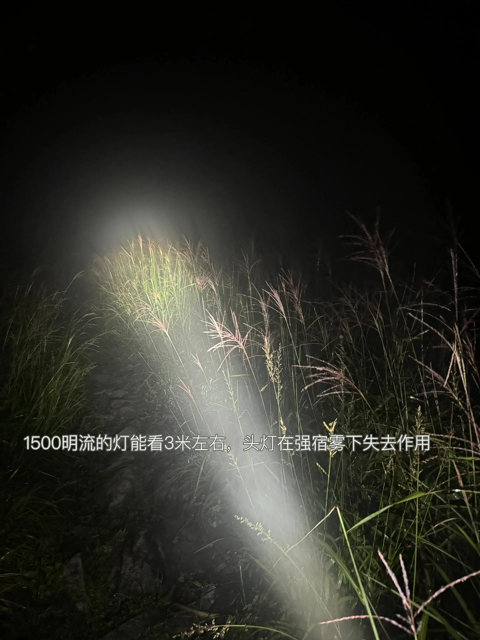 夜晚的登山之旅充满挑战。 高山草甸地带雾气朦胧,头灯在这里几乎失去作用。芦苇丛有肩膀那么高,露水打湿了鞋子。突然,一座塔出现在眼前,被雾气环绕,增添了几分神秘感。