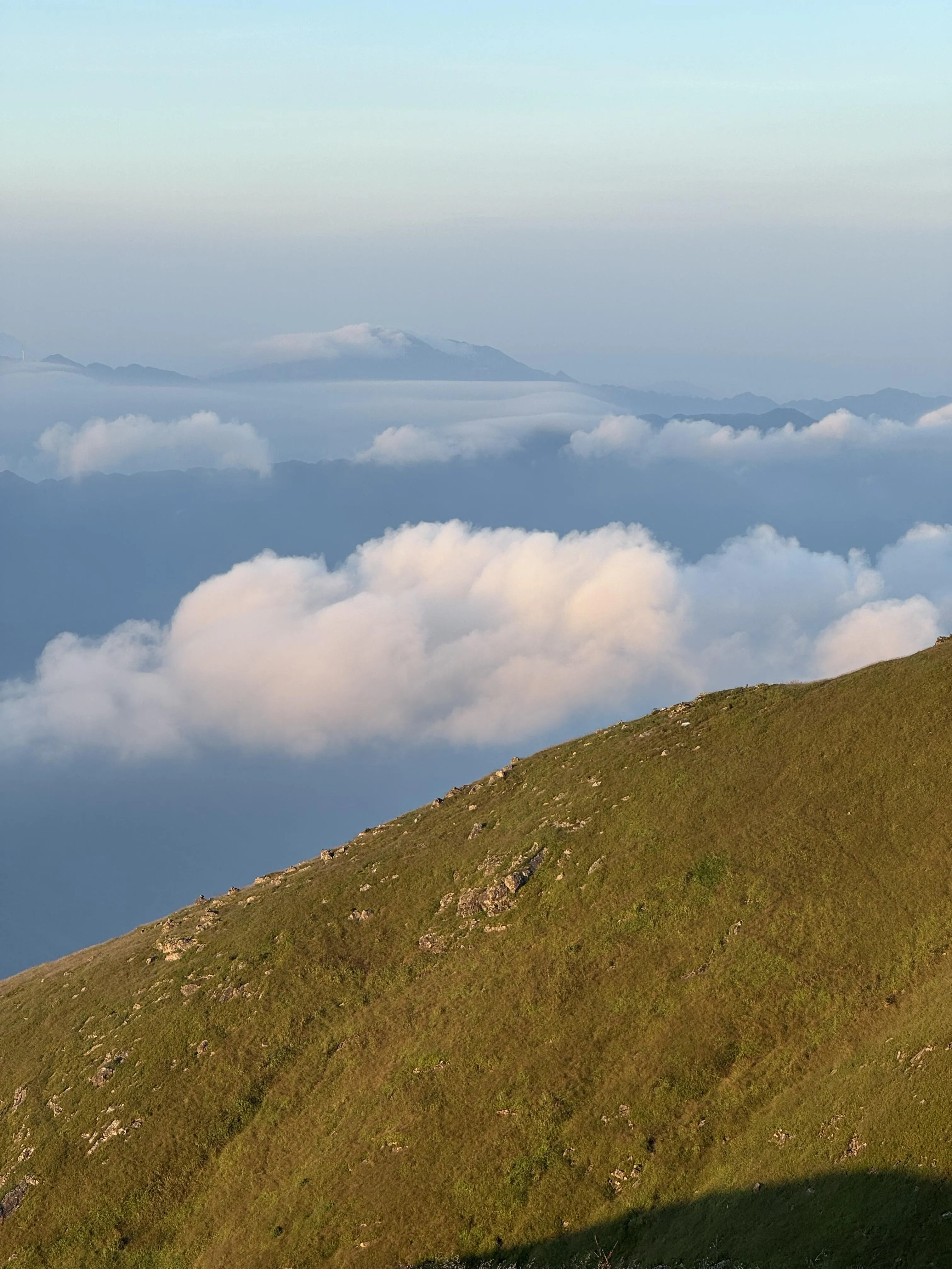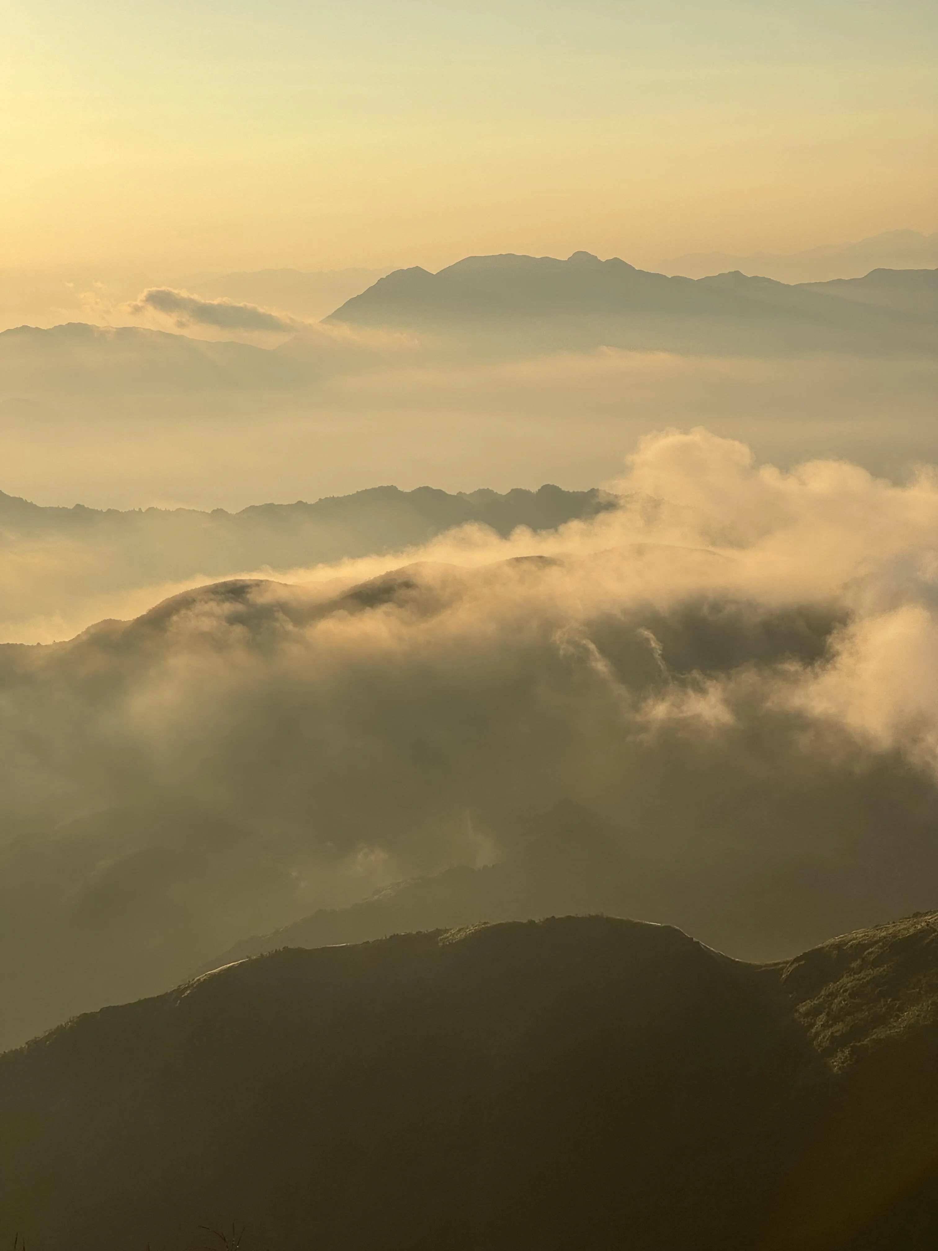 清晨,日出和云海的壮丽景象是对所有艰辛的回报。站在青山之巅,沐浴在晨光中,让人不禁感叹:我欲踏云千万里,青山之颠沐日光。