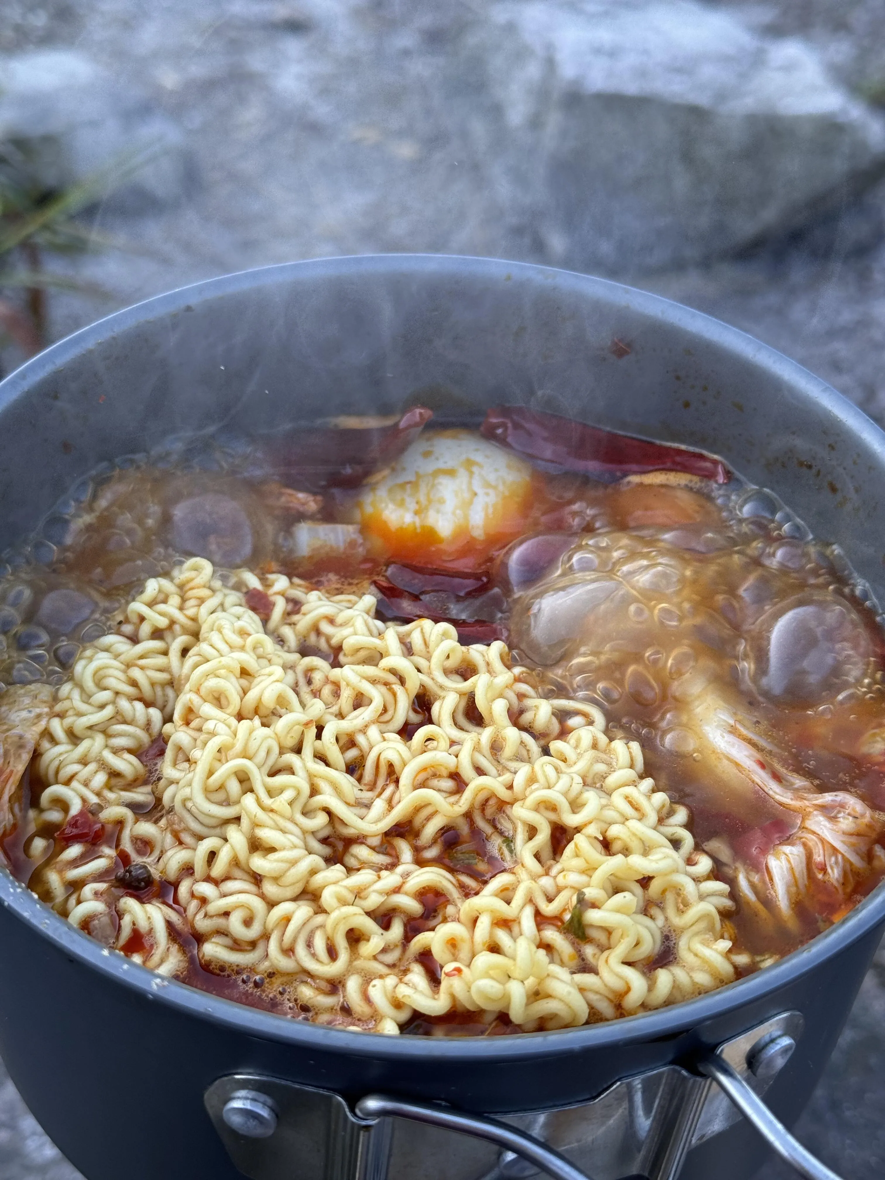 登顶后,山顶的强风迫使人退回垭口营地扎营。 尽管如此,依然能够成功搭建帐篷。深夜时分,有其他登山者到来,带来了一丝安全感。