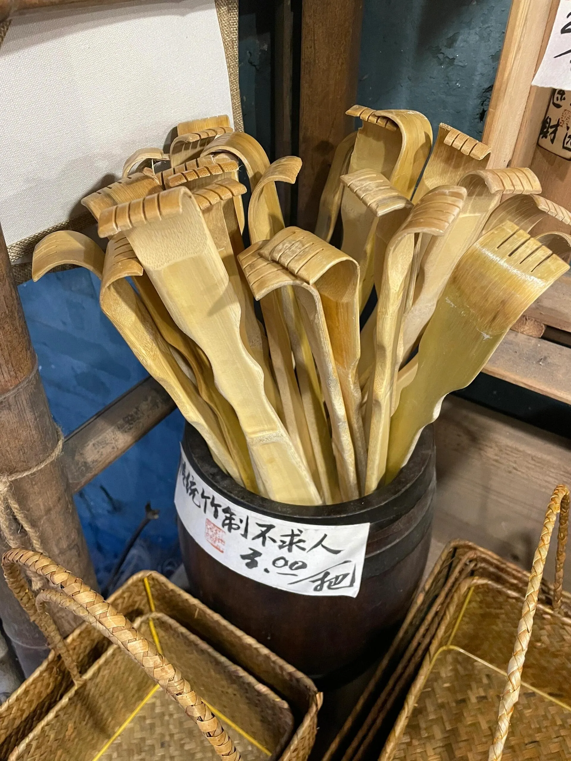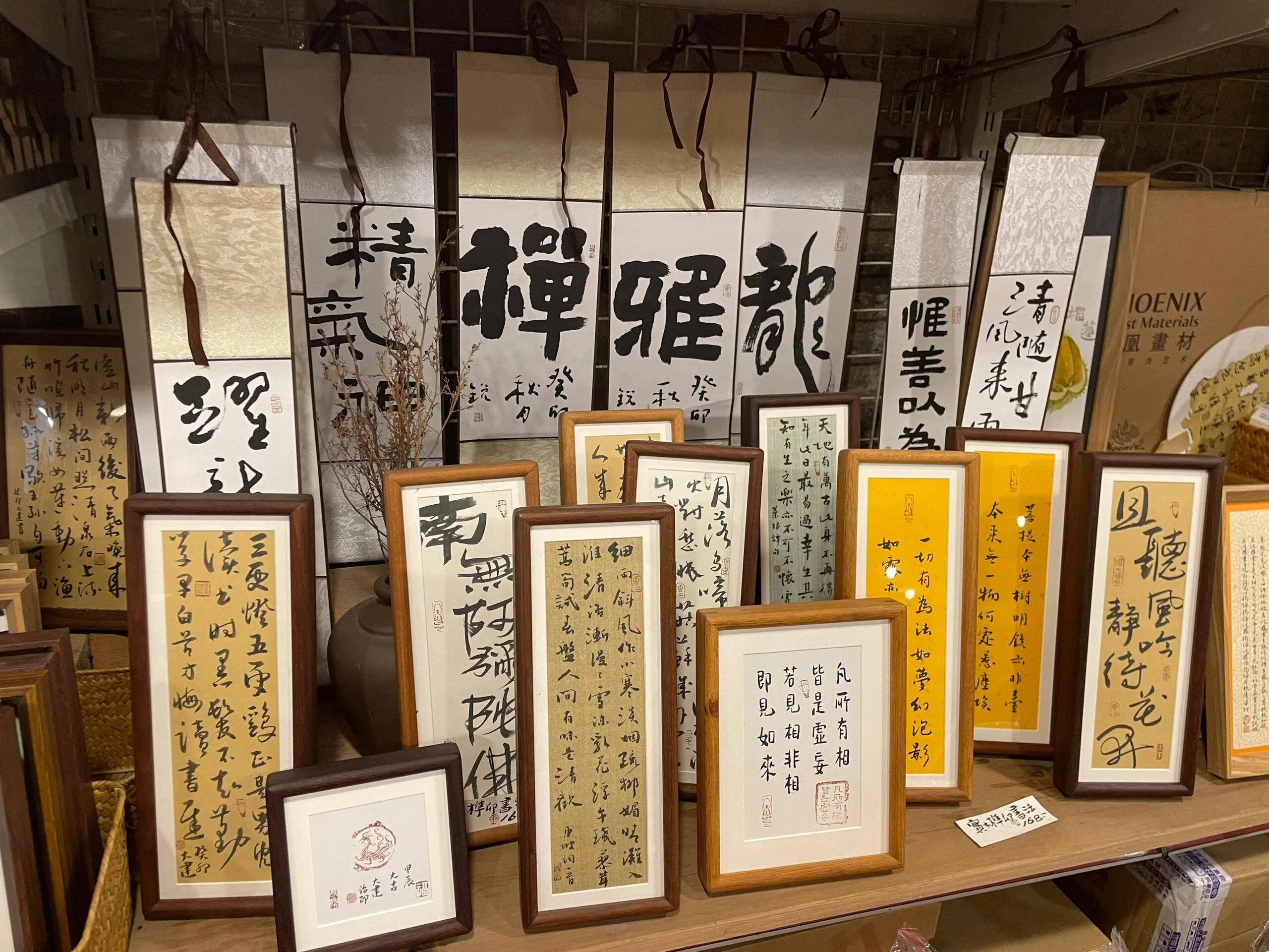 拜完后时间尚早,我按攻略找到了附近的“广源鹏程百货”。这家小店有各种手写摆件和编织品,可以让老板帮你写字。虽然字迹参差不齐,但我特别喜欢那个写着“祛湿”的摆件,很有广东特色。