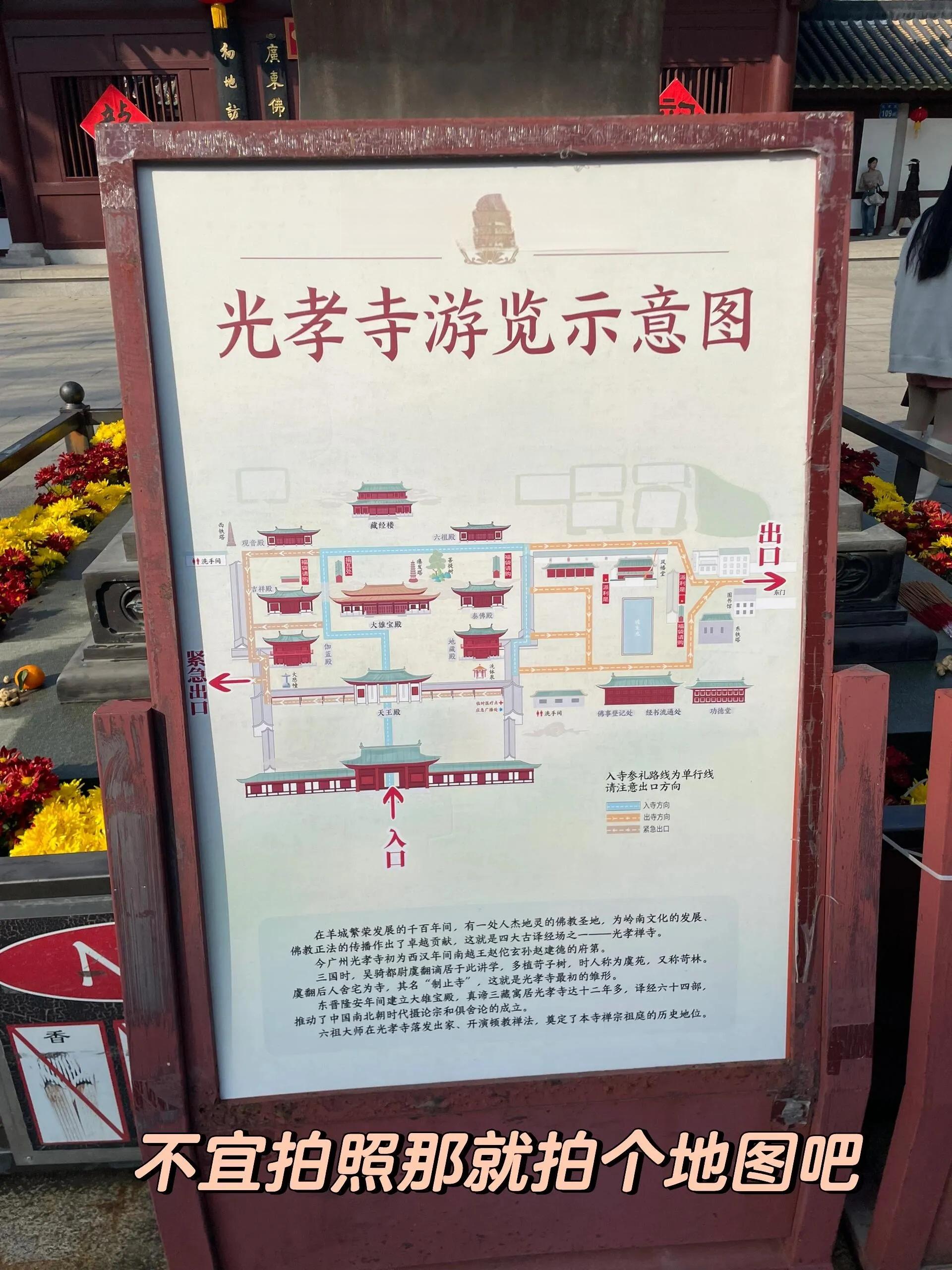 光孝寺位置很方便,从地铁西门口C出口往右走几百米就能看到。 门票5元,用微信扫码支付即可。 进寺前,我先看了下地图了解路线,因为据说拜佛时不宜走回头路。如果不小心走错了,重新再走一遍就好。