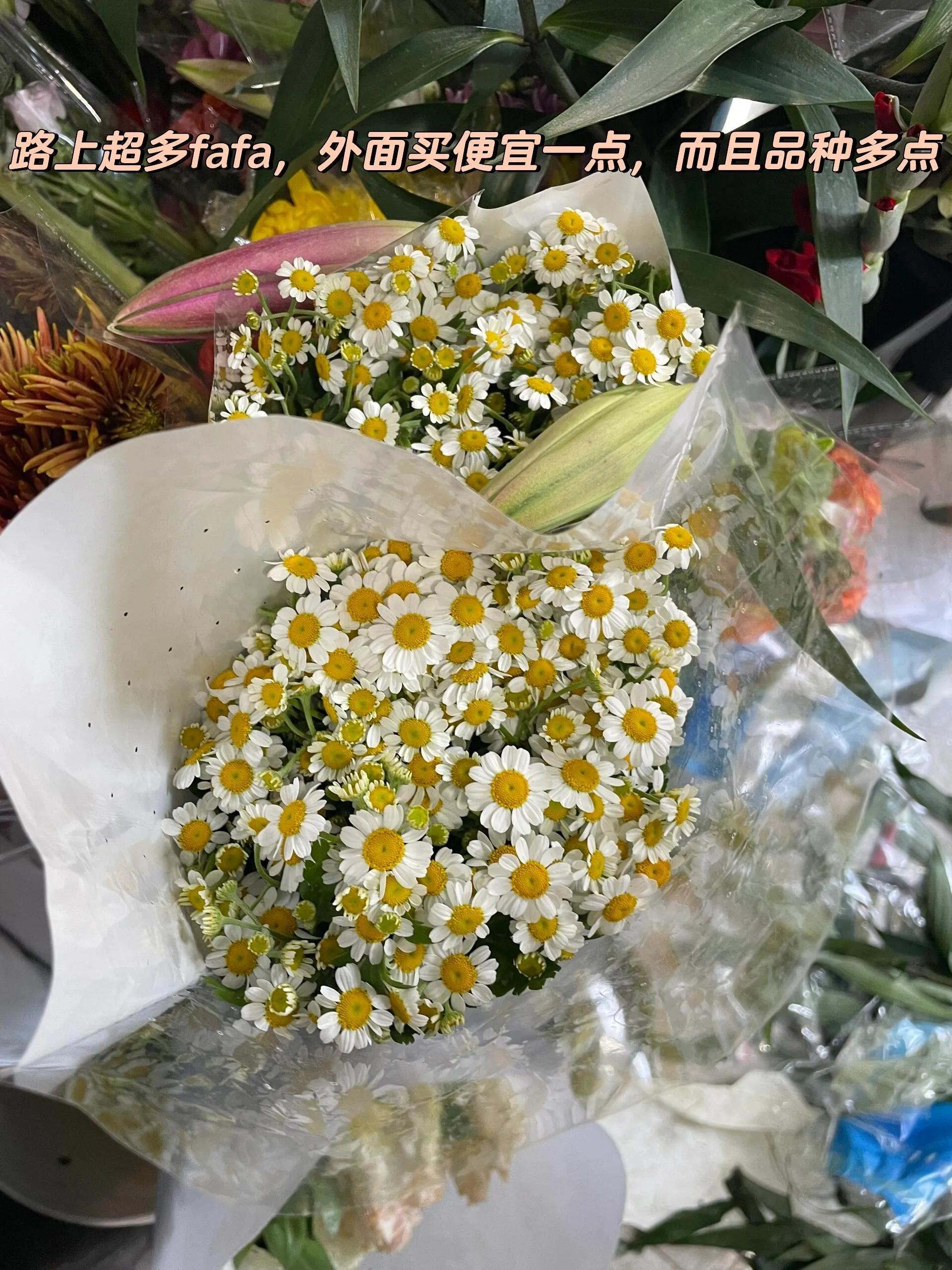 寺外有很多地摊和花店可以购买鲜花 ,比寺内便宜且种类更多。康乃馨和太阳花大约1元一支或10元一束,玫瑰和百合稍贵。如果每拜一次佛放一支花,准备15支左右就够了。