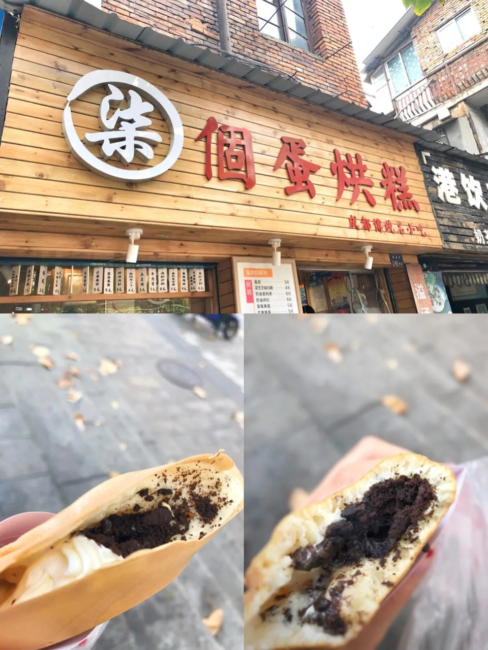 这个名字特别好听,打着成都名小吃的招牌。位置就在鱿鱼店旁边,可以一起尝试。点了六元一个的奥利奥口味,味道一般,有点干,不过里面的奶油还挺好吃的。