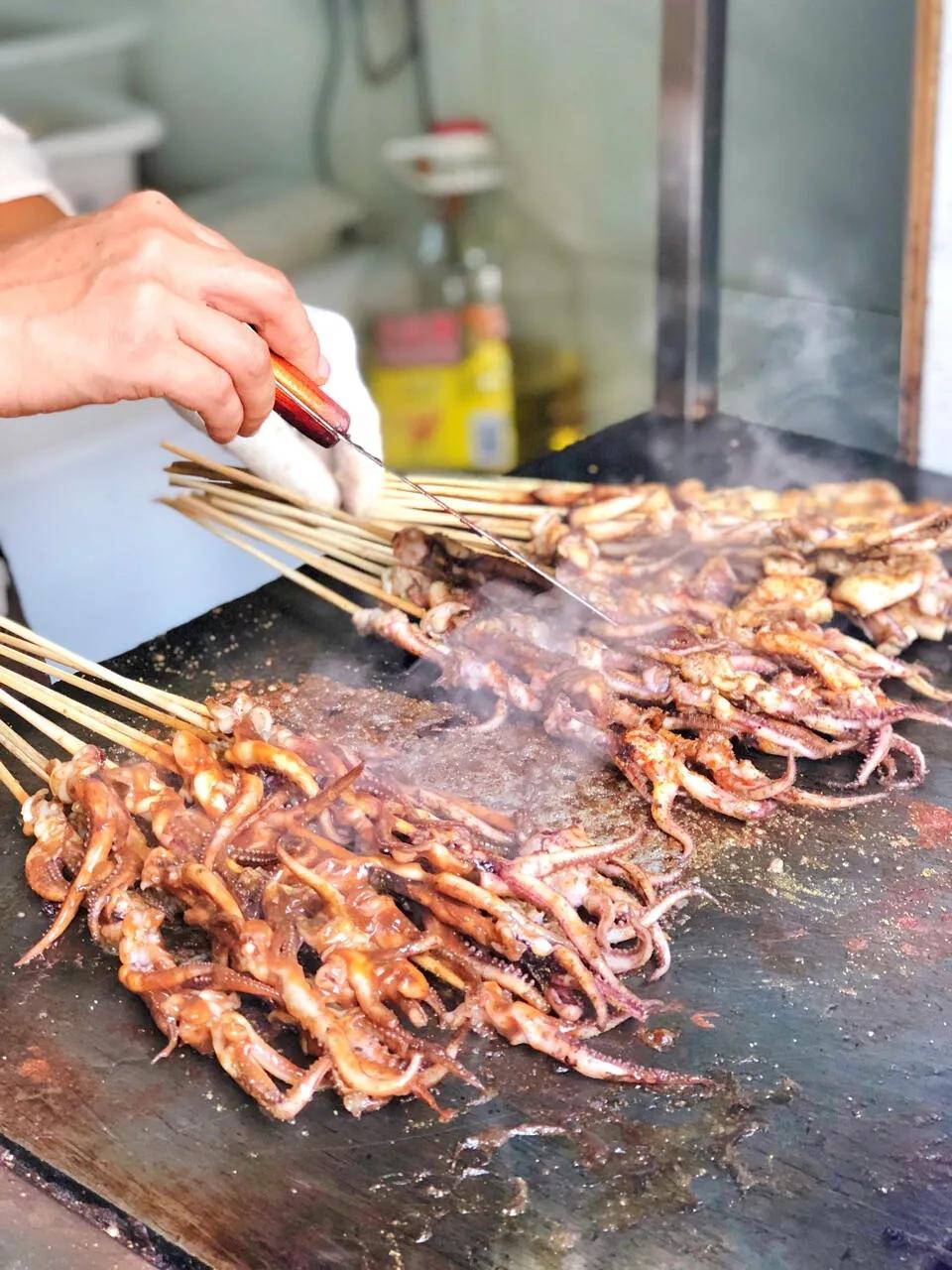 价格便宜,鱿鱼片2元,鱿鱼须和整个鱿鱼只要3元,超级划算。看着老板制作就让人食欲大开!一定要趁热吃,热的口感最佳。我最喜欢吃鱿鱼片,肉肉的,吃起来超级满足。