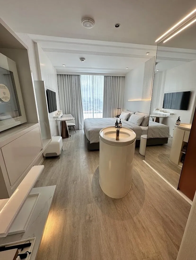房间小巧整洁干净,入住体验友好。标准间可能不适合需要大空间的客人。值得一提的是,在曼谷很少见到允许在房间内食用榴莲和吸烟的酒店。