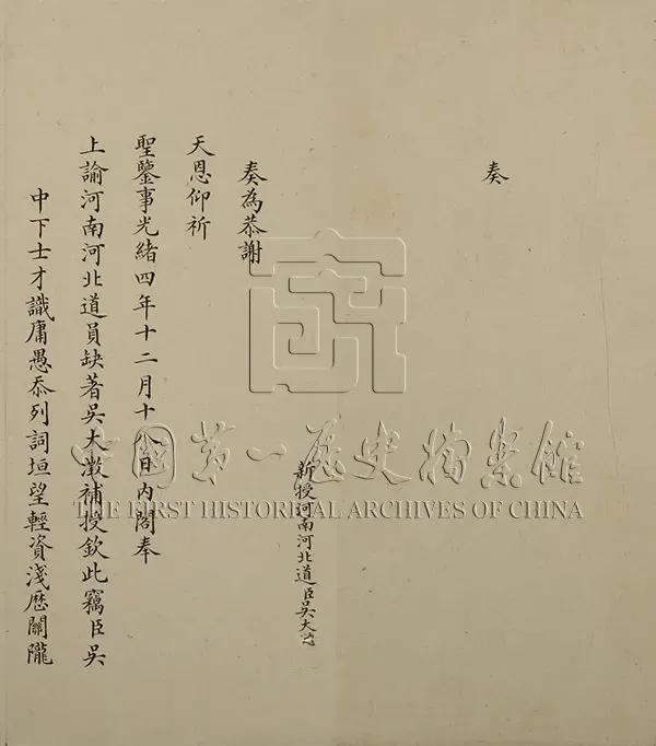 ❖ 新授河南河北道吴大澂为奉旨补授河南河北道谢恩事奏折