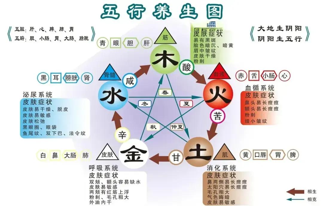 五行、五脏、五色、五味之间构成了一种紧密相连的“养生环”。