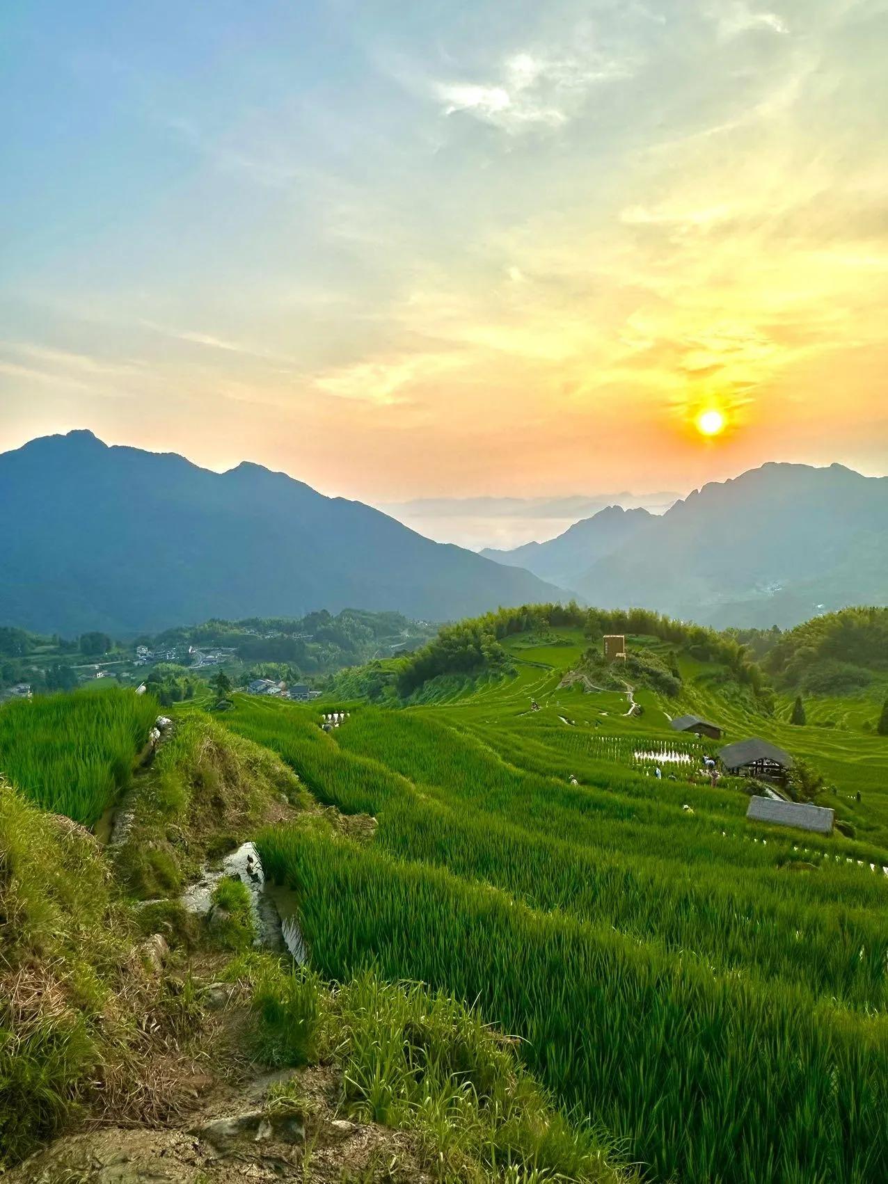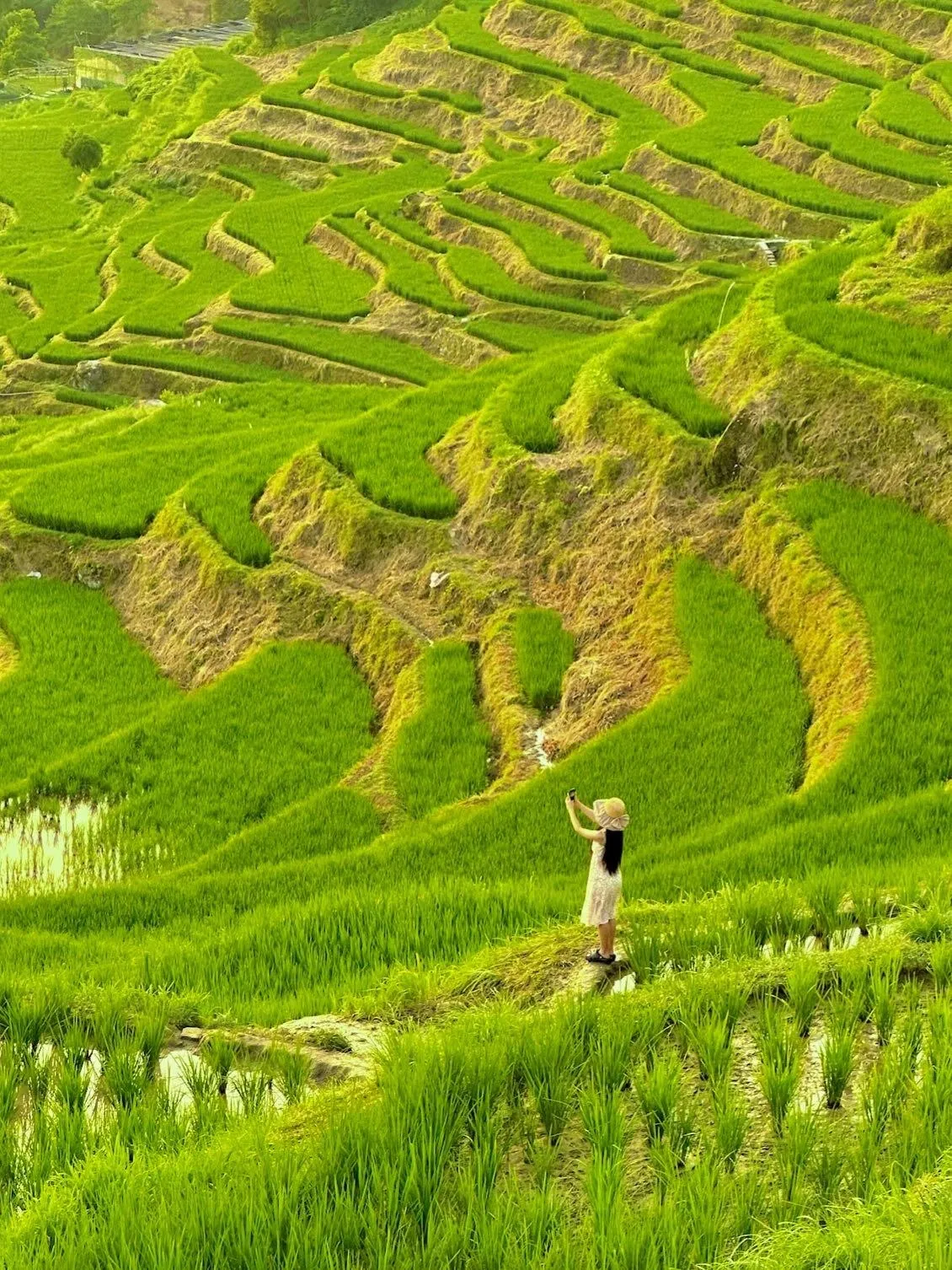 浙江丽水的云和梯田,是一处不容错过的美景。 水稻插满的梯田,一眼望去郁郁葱葱,仿佛置身于宫崎骏的童话世界。