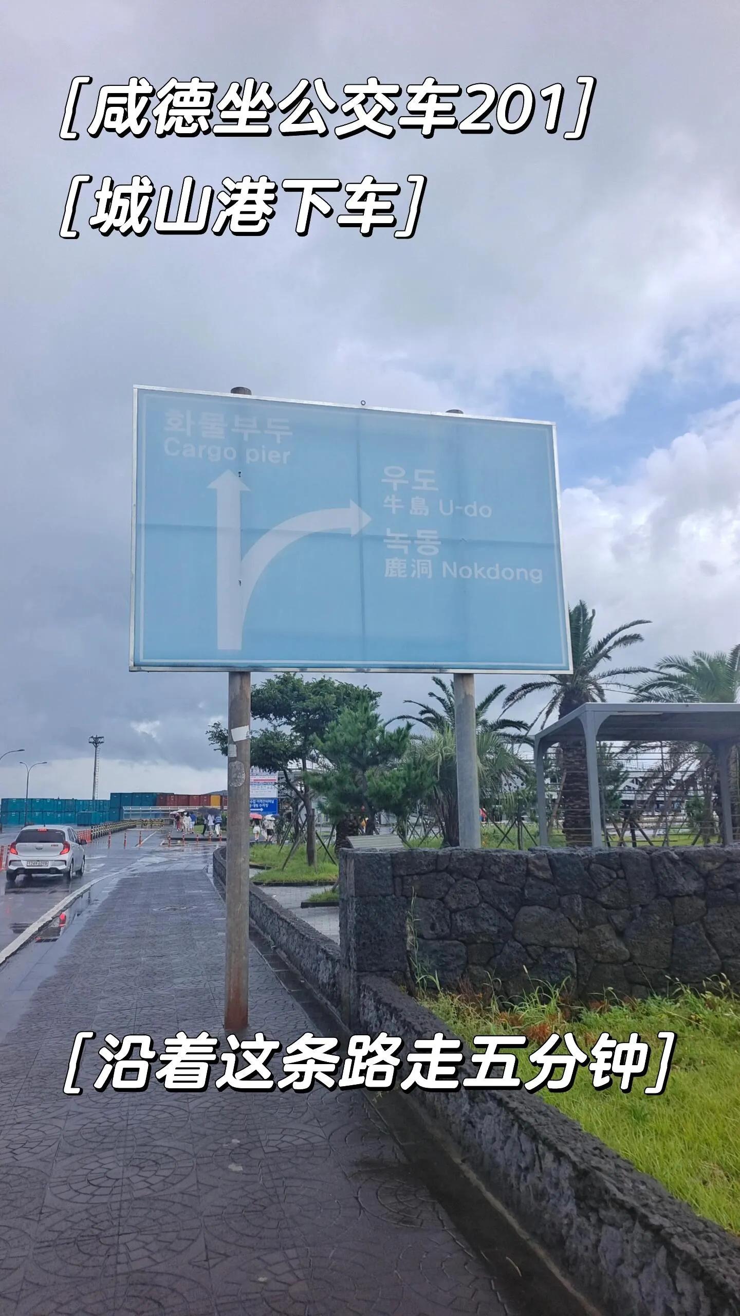 出发地点是咸德海水浴场,乘坐201路公交车(蓝色无换乘)大约1小时到达城山港。下车后步行5分钟就能到达购票厅。沿路有便利店和餐厅,非常方便。