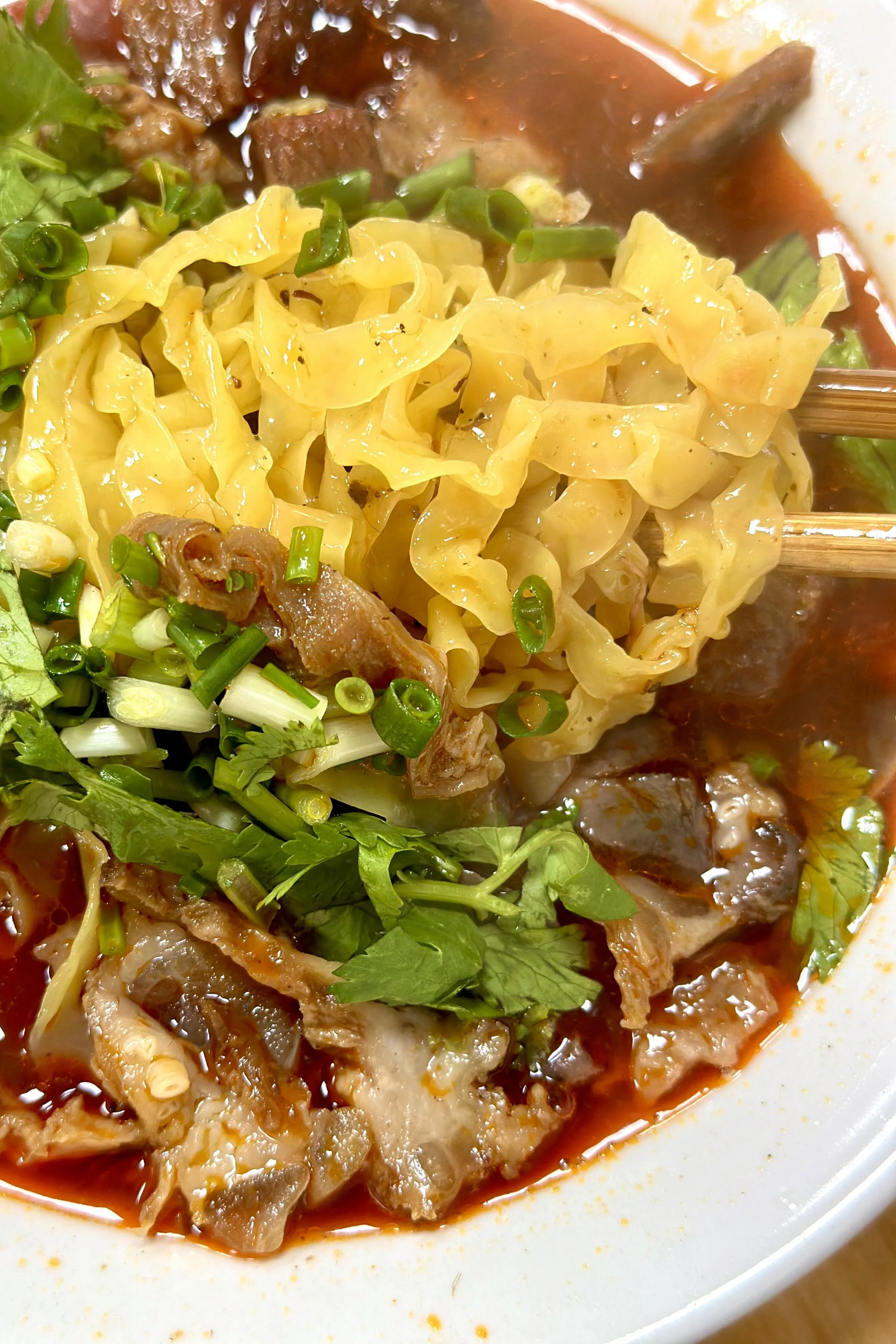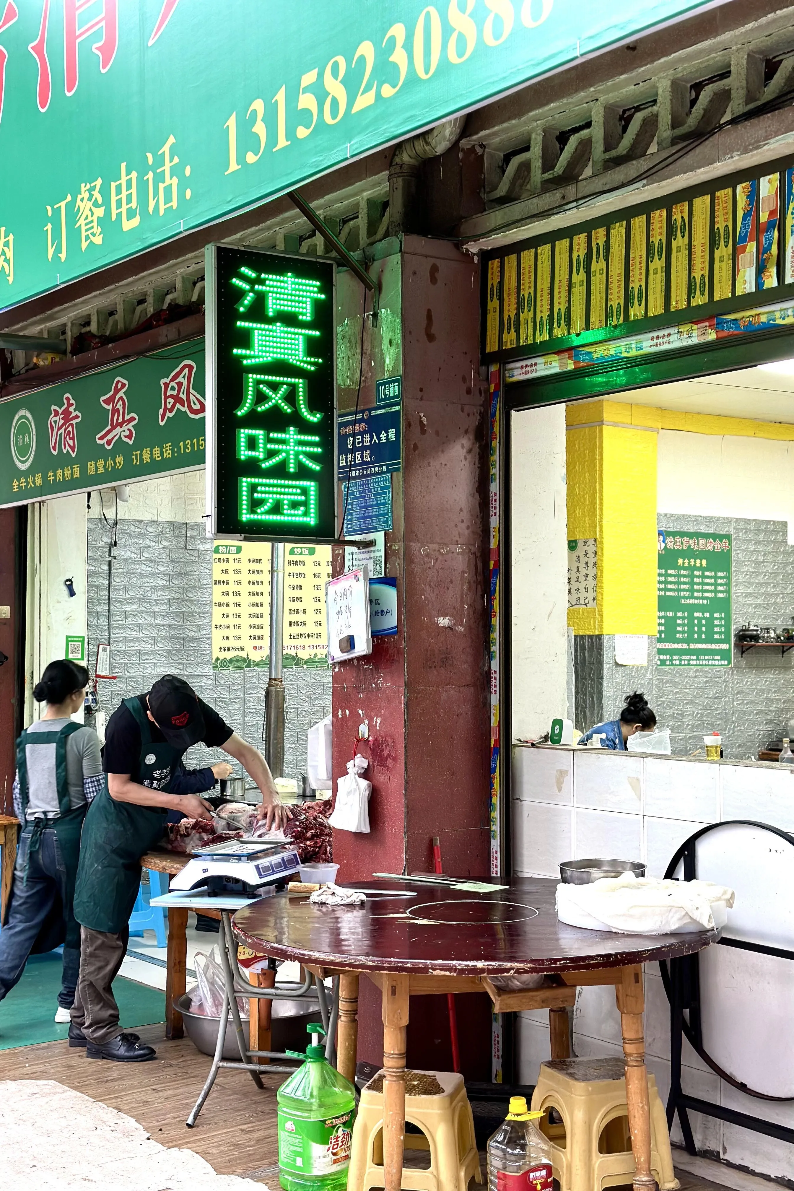 清真风味园门口摆放的大块生熟黄牛肉非常诱人。店内的红烧牛肉宽面值得一试,牛肉切块大小适中,面条劲道有嚼劲。店里的牛皮和牛蹄筋也是不错的选择,口感独特,值得品尝。