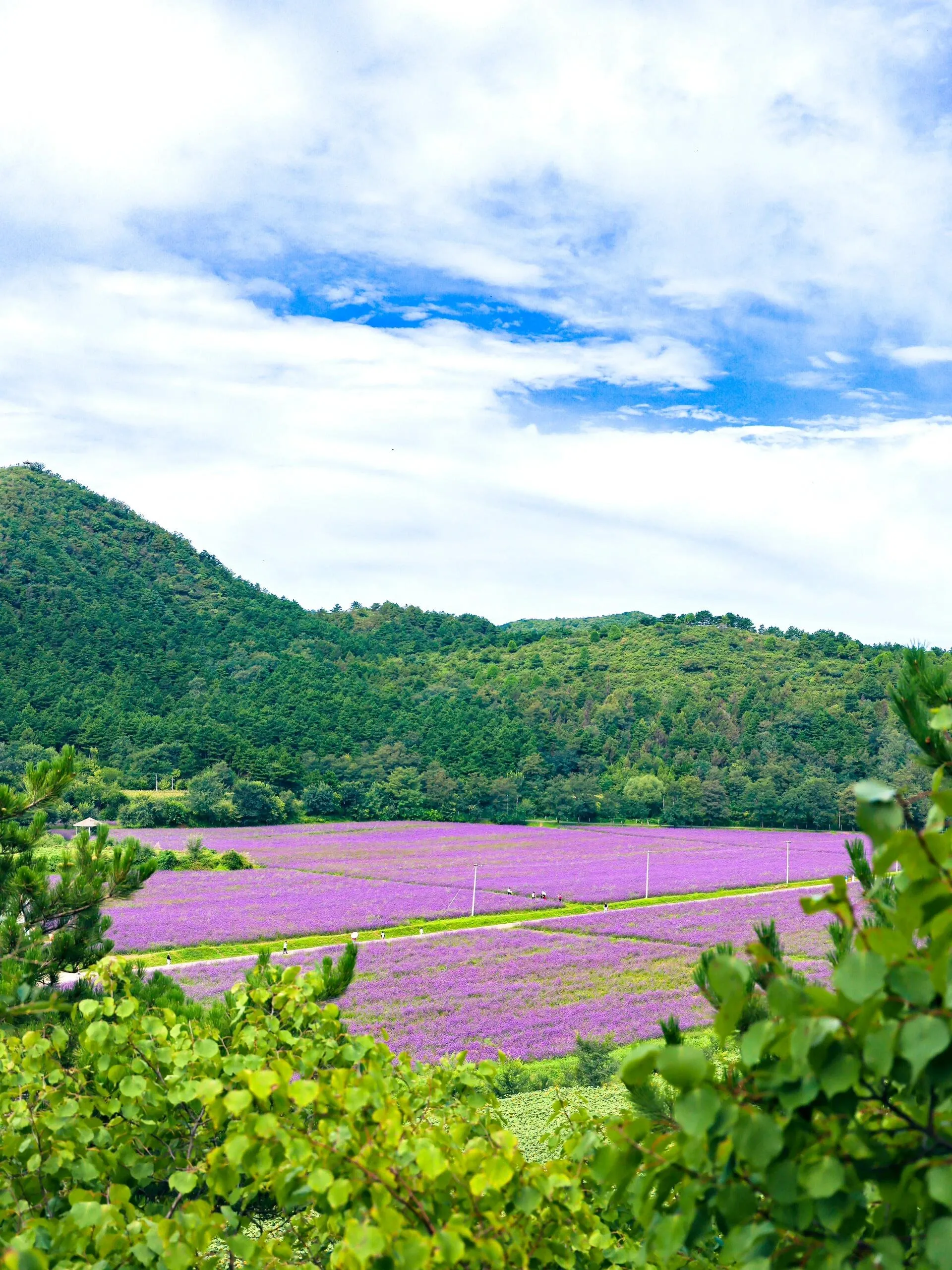 抵达四海镇的黑汉岭村,远远就能看到一片片五彩斑斓的花海。踏入这片被称为“四季花海”的地方,仿佛瞬间穿越到了童话世界。这里之所以有此美称,是因为花期较长,在不同季节都能欣赏到不同的花卉。 夏末初秋,以马鞭草、黄波斯菊和向日葵为主 ,尤其是紫色的马鞭草花海在蓝天白云和远山的映衬下,美不胜收。