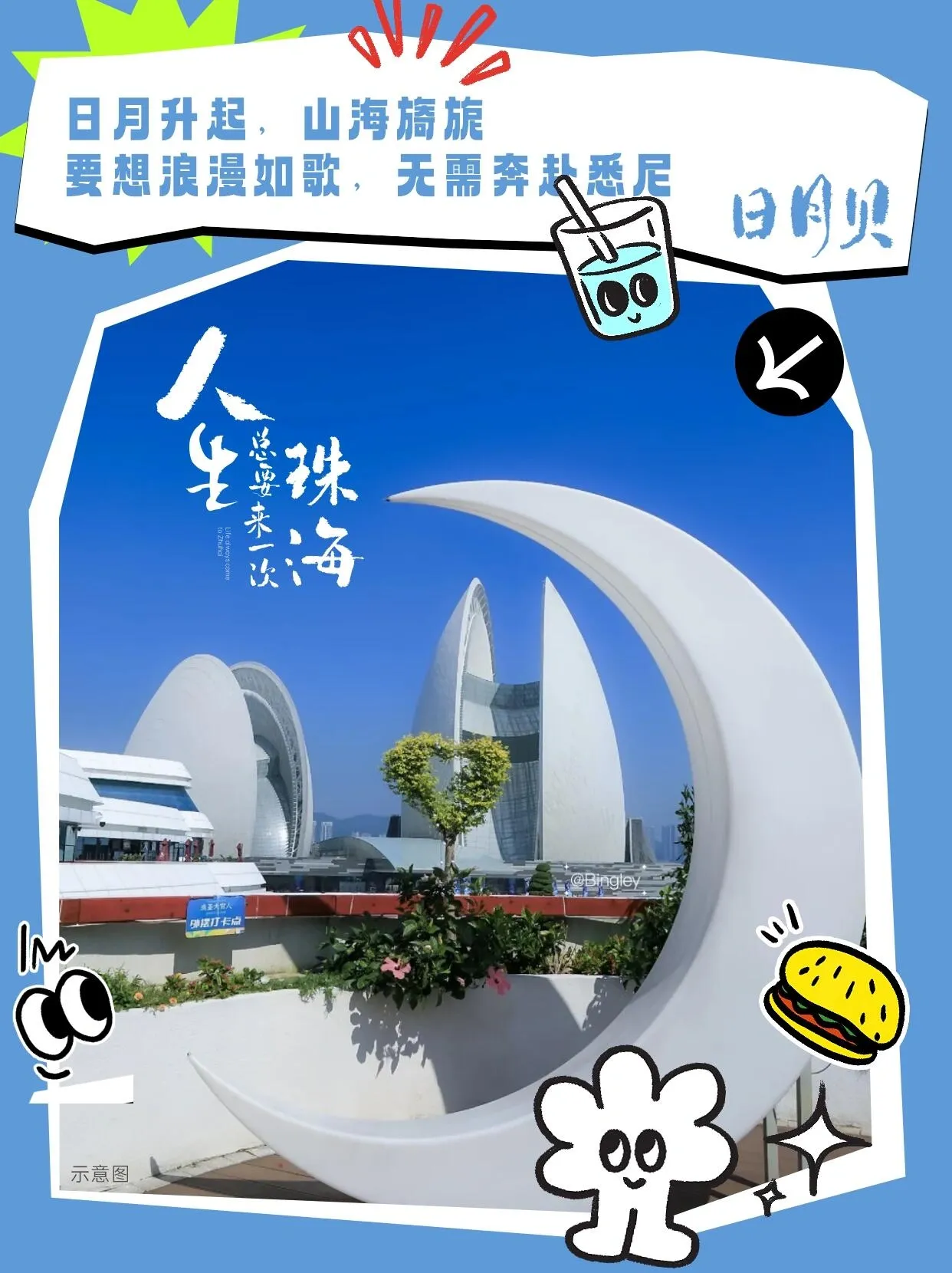 一踏入珠海,直奔日月贝!这对闪耀的“贝壳”不仅是建筑界的瑰宝,更是情侣们必打卡的浪漫圣地。夜幕降临时,灯光与月光交织,仿佛置身童话世界,每个角度都是一张甜蜜出片照!建议开启夜景模式,捕捉那抹温柔的蓝光,让照片更加梦幻。