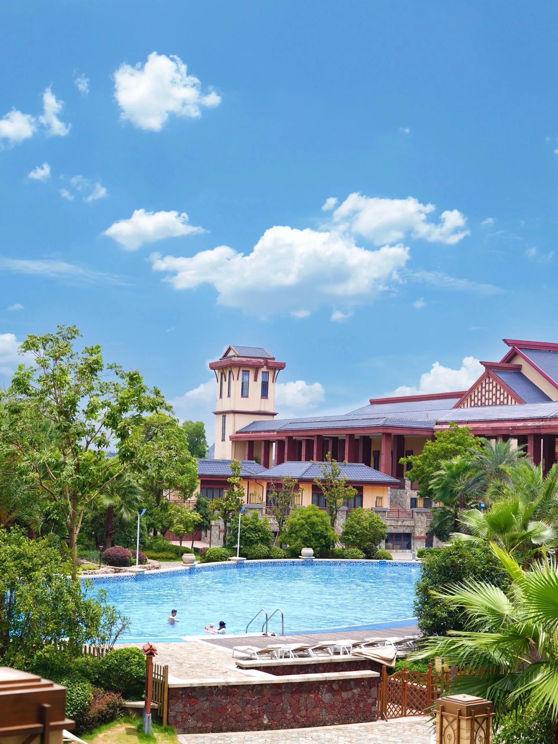 这里的户外设施非常丰富,有超大泳池、水上乐园、沙滩、高尔夫、室内泳池、小火车、水幕音乐喷泉、烟花秀等等。