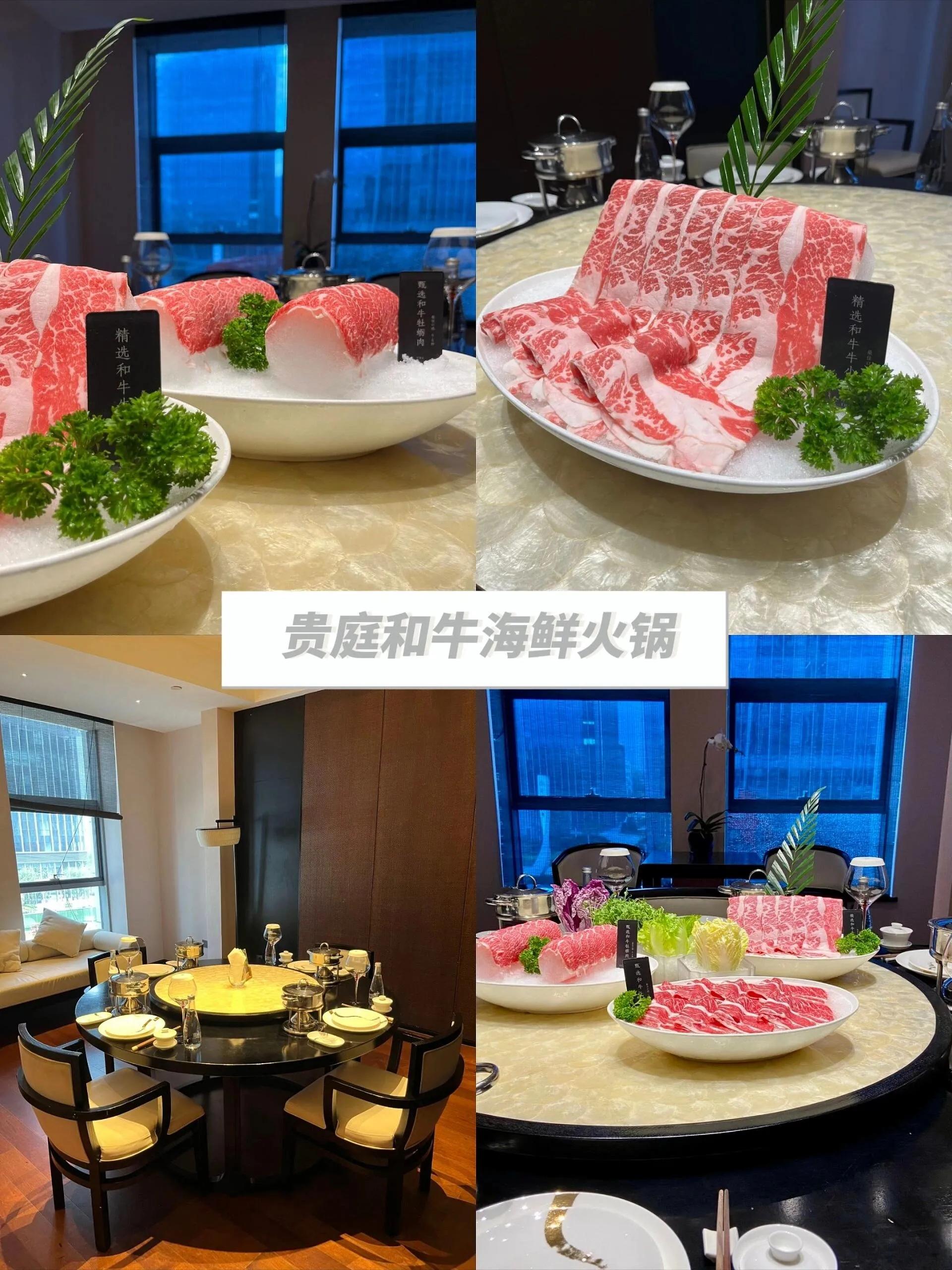 贵庭和牛海鲜火锅是一家环境极佳的餐厅。 和牛的品质绝佳,纹理美丽,肉质细腻到仿佛能在舌尖融化。 搭配新鲜捕捞的海鲜,每一口都是对食材本味的完美诠释。锅底搭配得当,既美味又滋补。饮品中的洛神花枸杞汁别具特色。