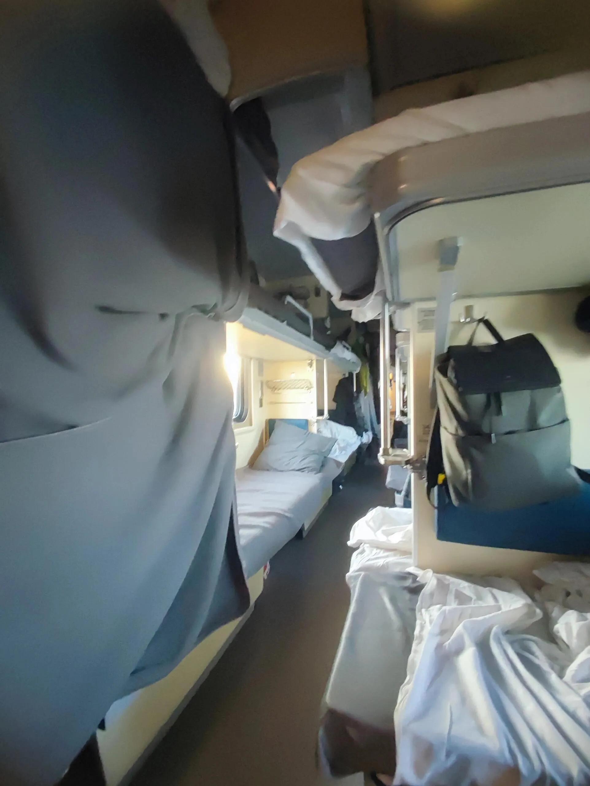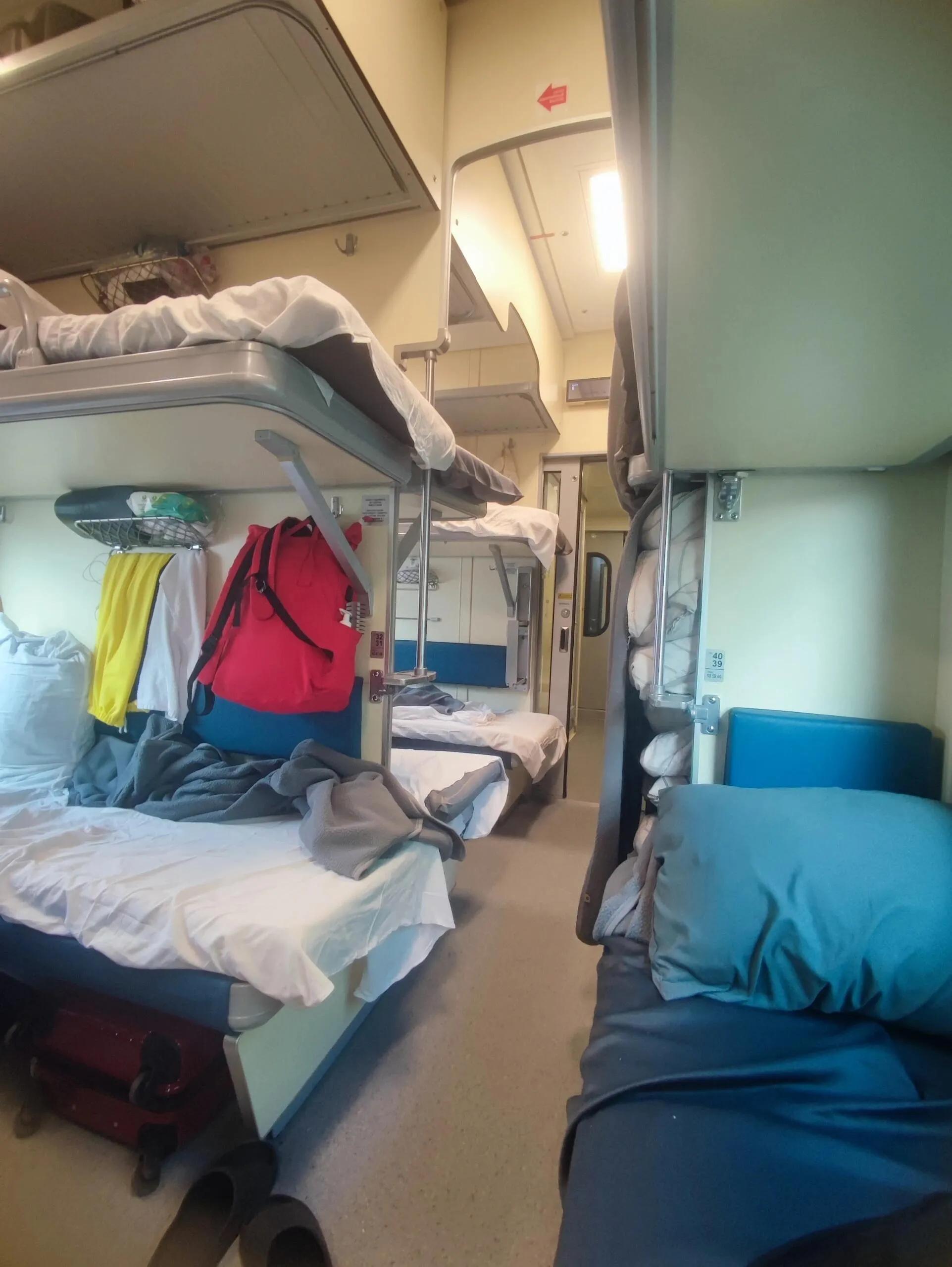俄铁的卧铺车厢布局独特 ,每个小隔间设有6张床位,其中4张与中国国内布局相似,另外2张则延伸至过道。上铺乘客面临着缺乏坐姿空间的问题,除非下铺乘客愿意分享。然而,俄罗斯人通常较为注重个人空间。