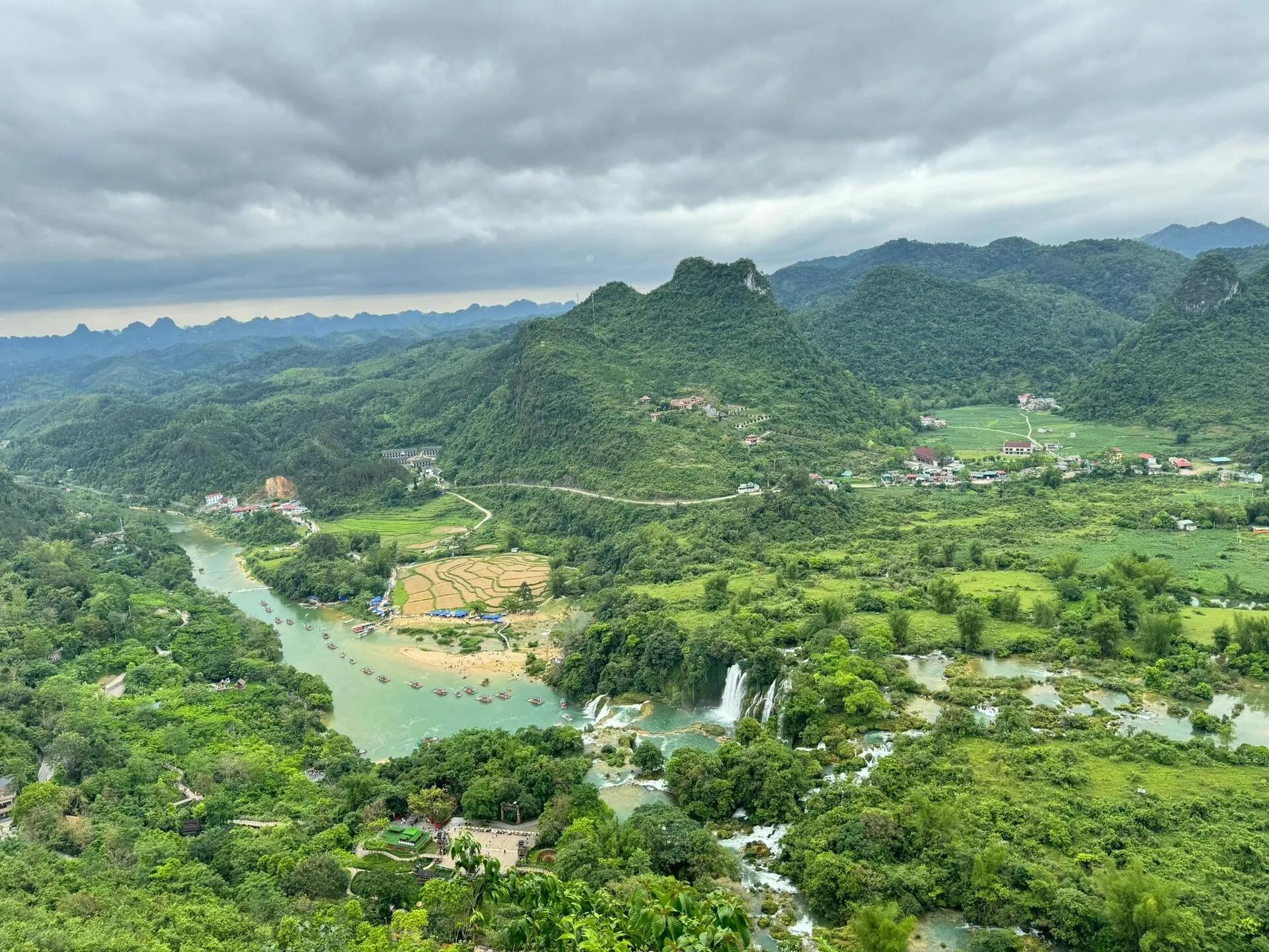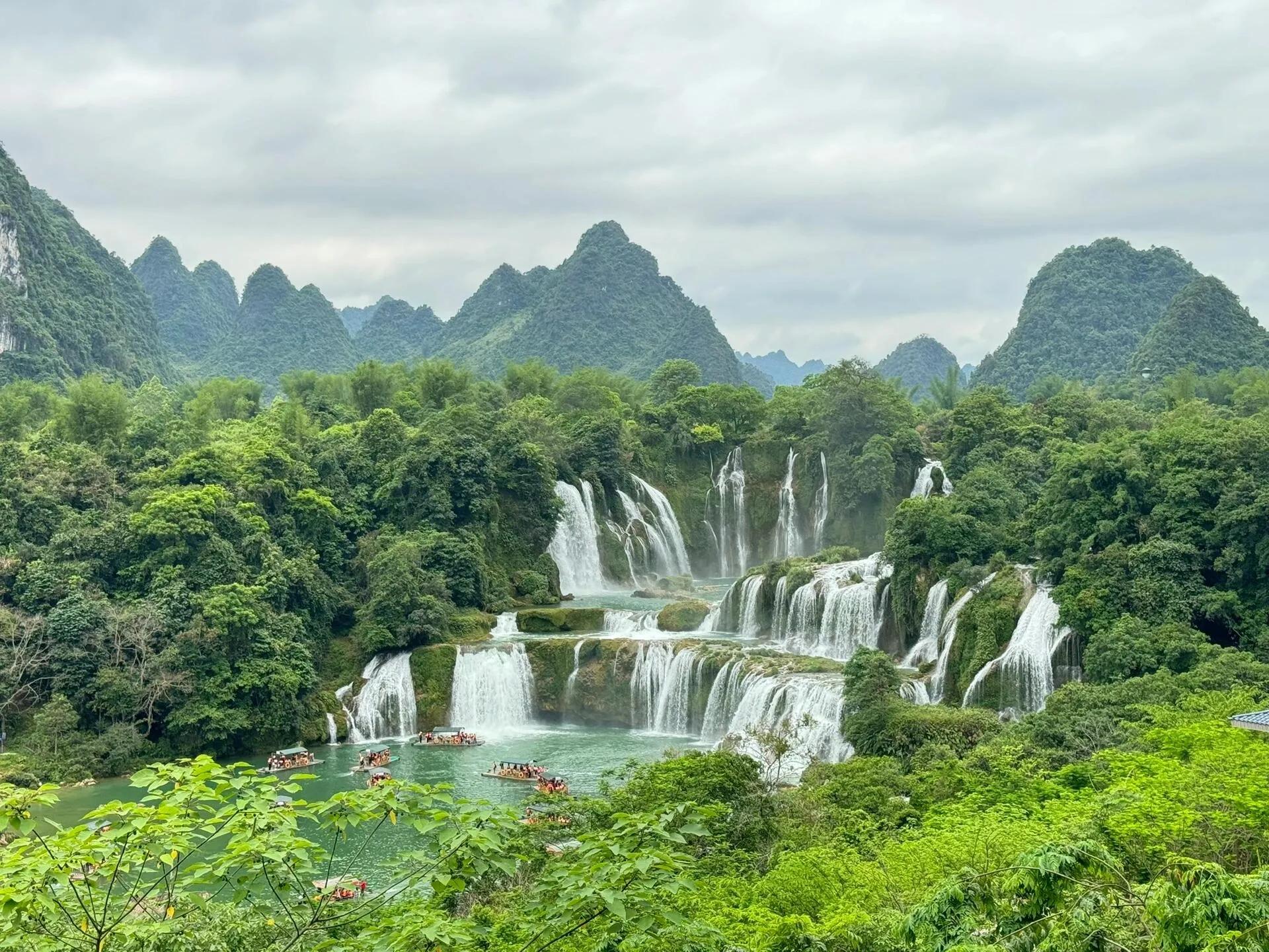 第二天:早上8:30出发,乘顺风车前往德天跨国瀑布。节假日只能拼车,司机不接独享,上车还会加价,最终120元/2人拿下。在景区游客中心可以免费寄存行李。票价228元(包含竹排、观光车、魔毯和滑道)。德天瀑布真的太美了!这里是中越交界,坐上小船可以看到越南,蛮奇妙的。景区是个环线,大家跟着人流走就好。坐完船一路步行看景色,就到了坐魔毯的地方。魔毯下来,还要爬20分钟才能到山顶。山顶可以看到瀑布全貌和周围景色,然后就坐滑道下来。友情提示,滑道很刺激,60岁以上老人我觉得还是要慎重考虑。